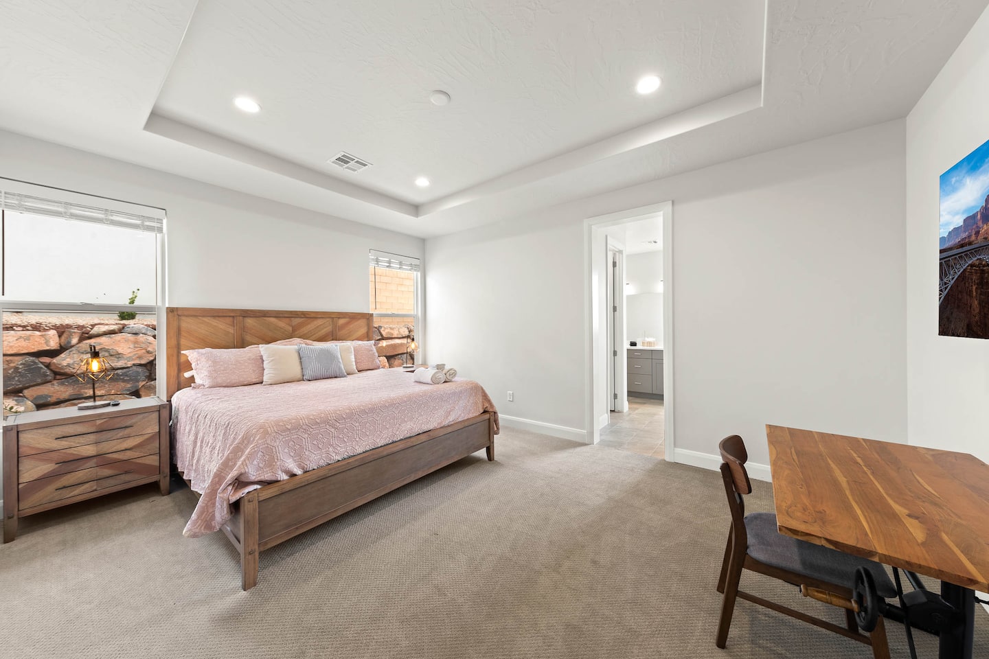 We are nestled in the picturesque red rocks of Southern Utah. Our resort style neighborhood offers a lazy river, pool with a water slide, 2 hot tubs, a splash pad, and 2 pickle ball courts. We are centrally located between all the attractions Southern Utah has to offer. When you feel like heading into town, downtown St. George is 10 minutes away by car to enjoy fine eateries and shopping. Looking for something to do after dinner, catch a live performance at Tuacahn Center for the Arts which is only 20 minutes away. Feeling adventurous? Book an organized side-by-side tour through the red rocks and sand dunes at Sand Hollow.