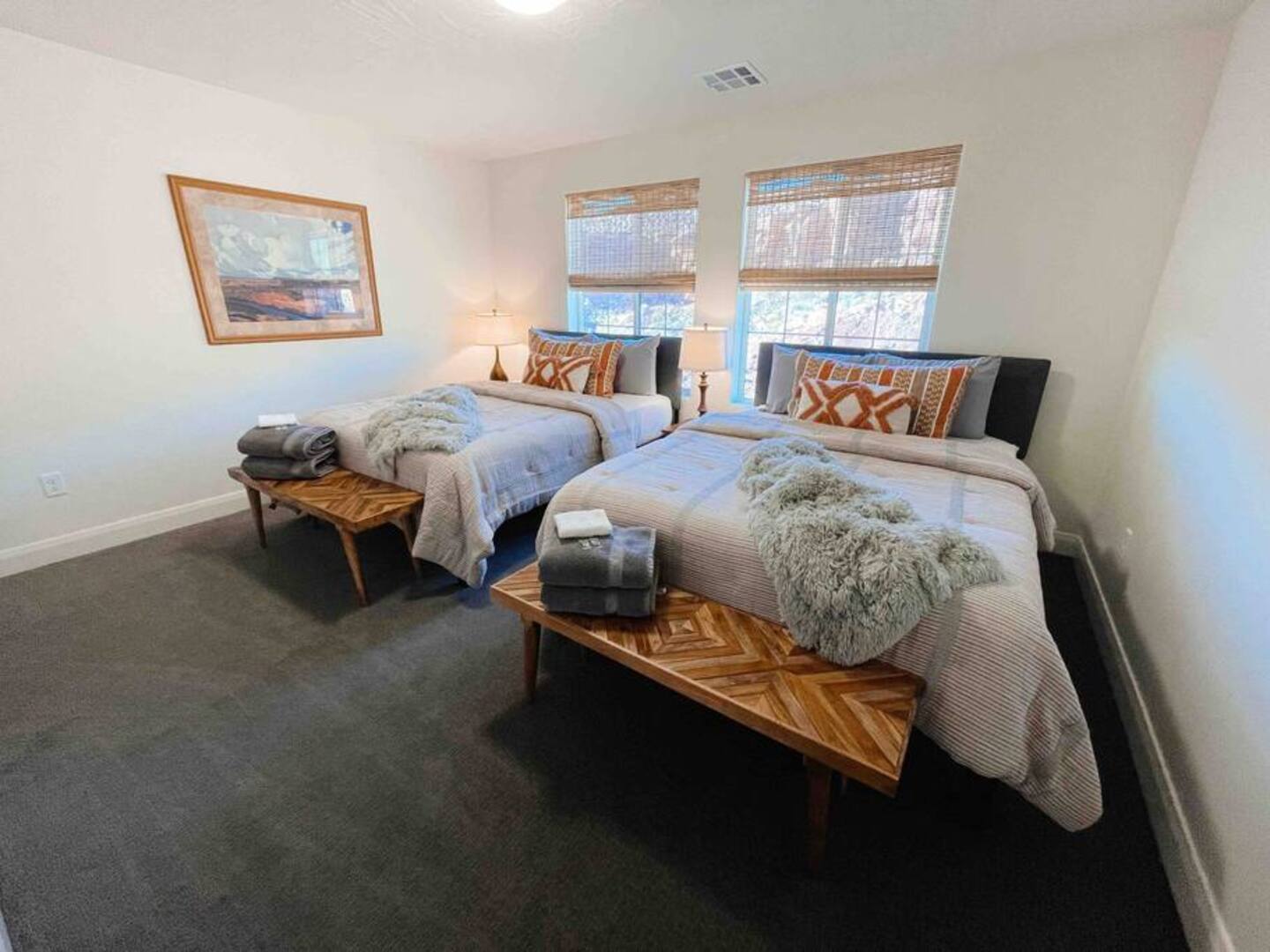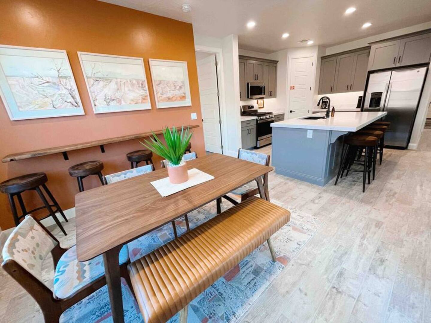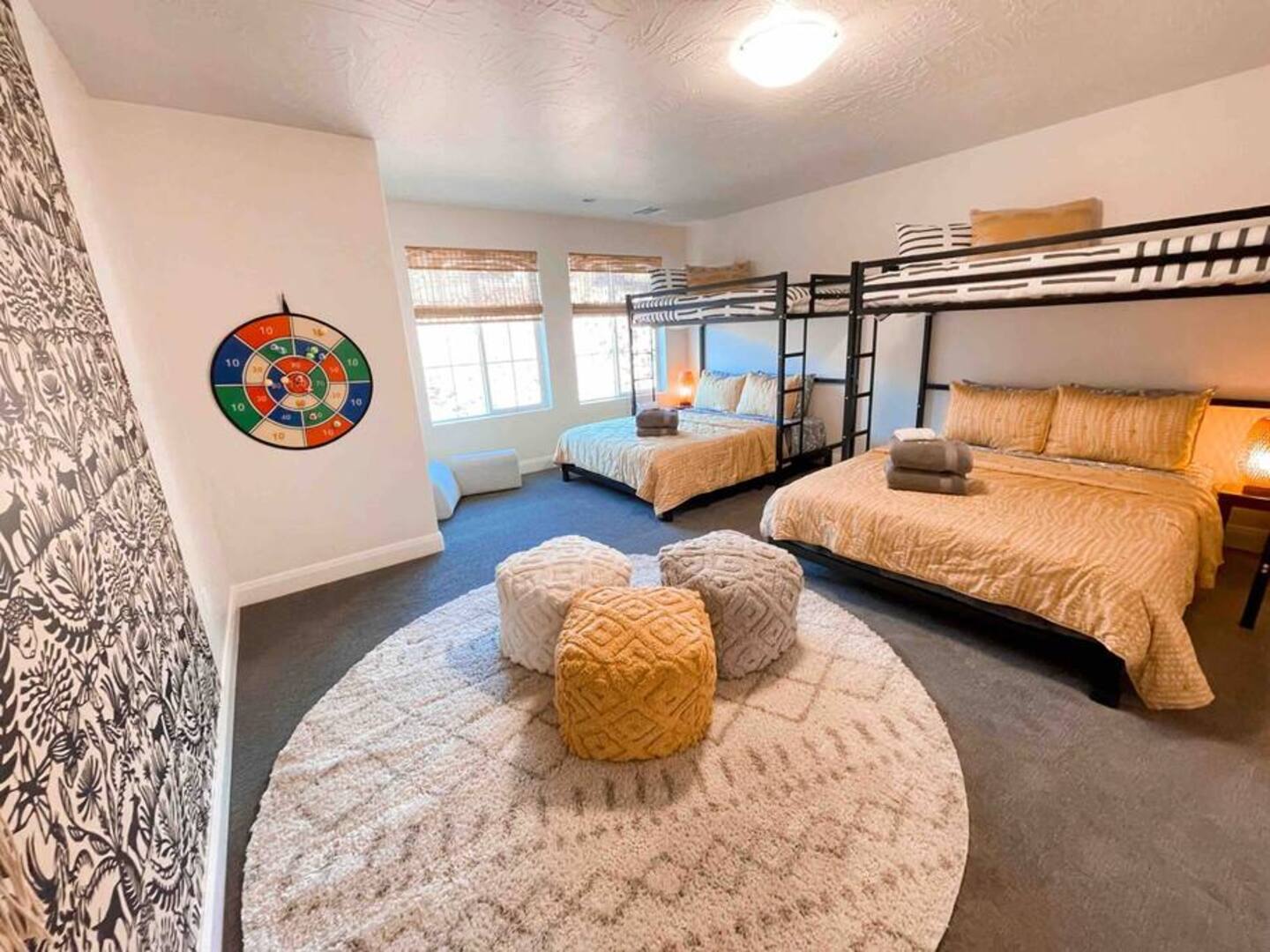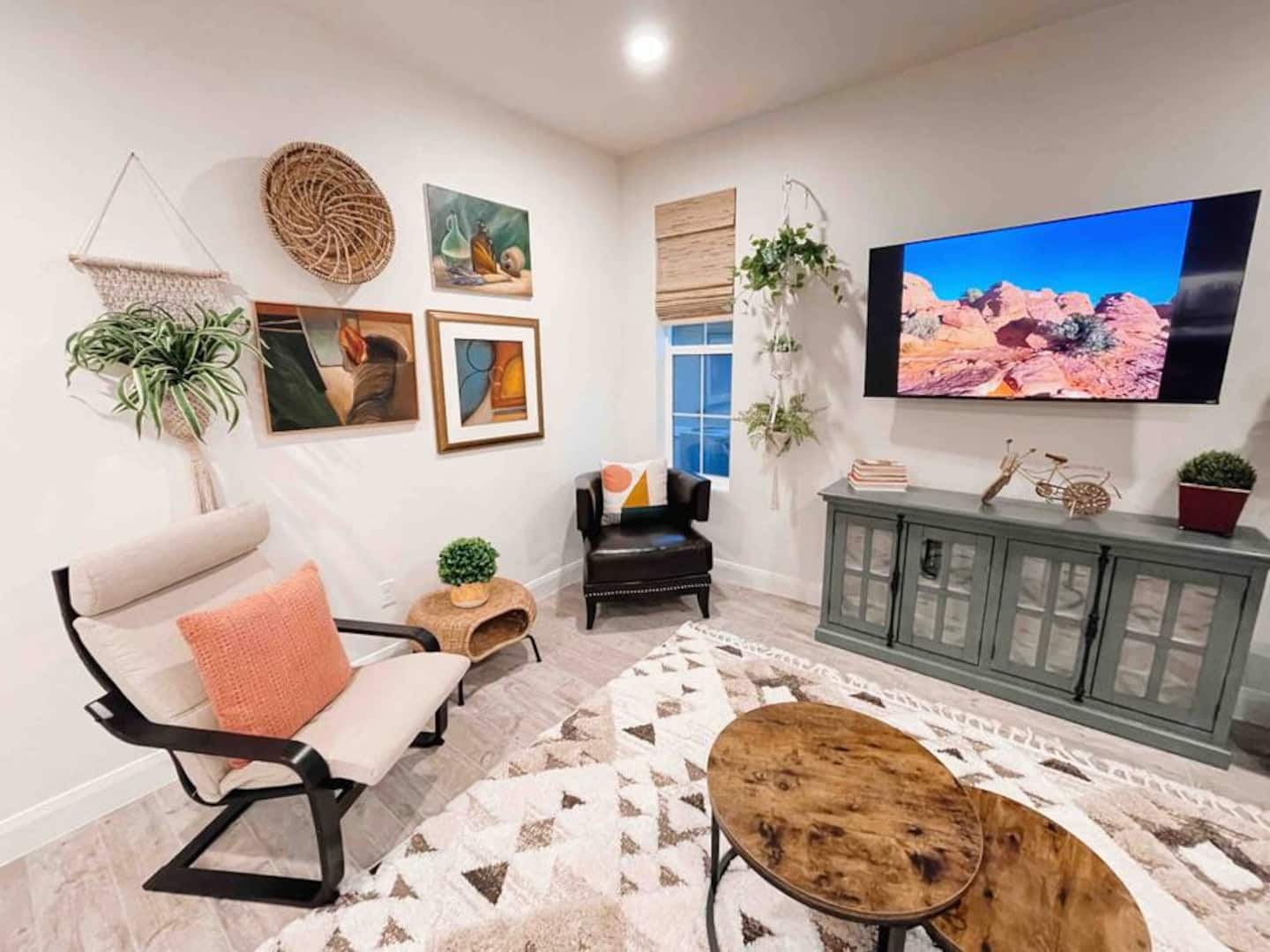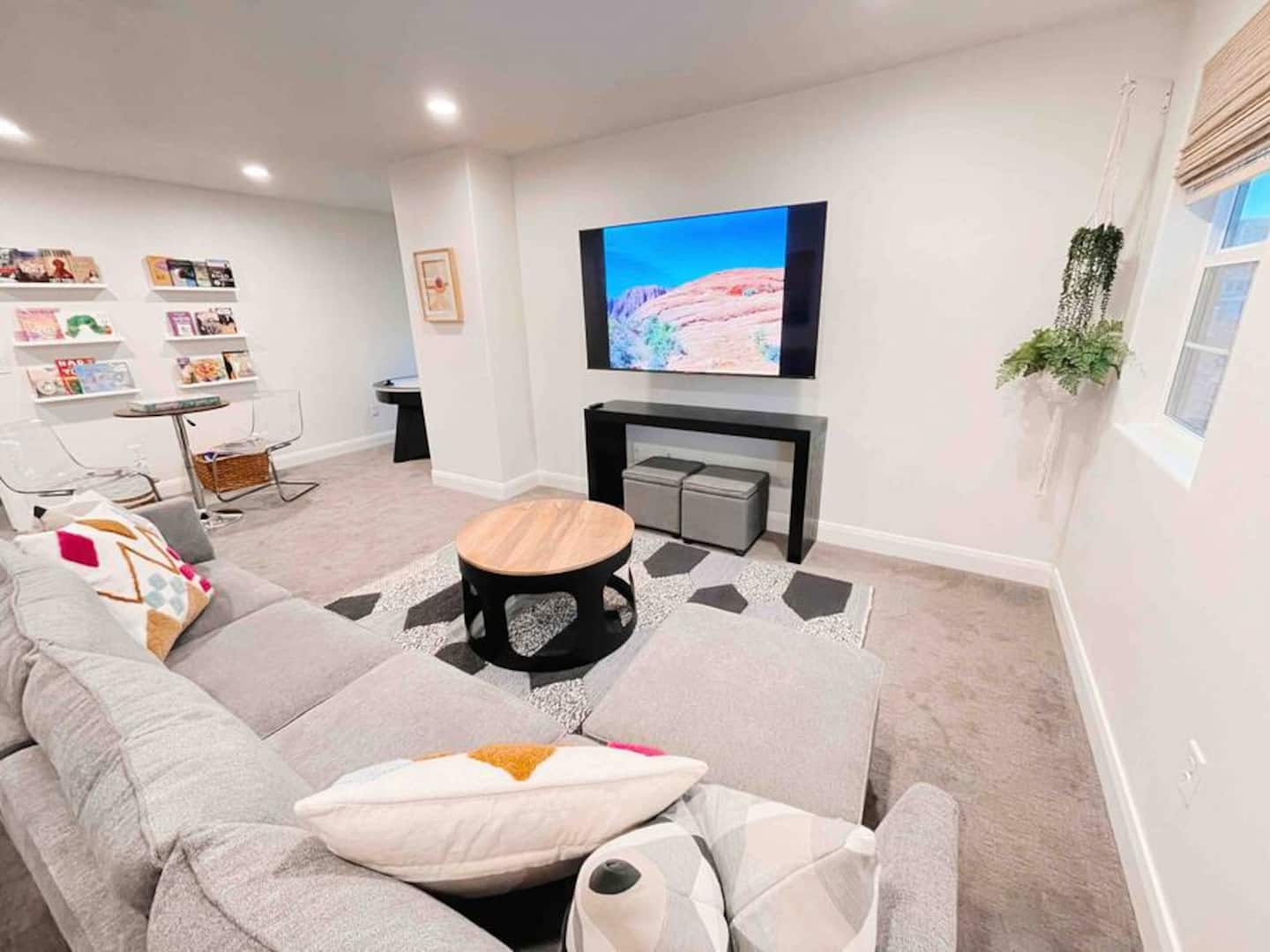 Experience the best of Southern Utah from the comfort of this townhome. Bicycle Boho near Zion's 2600 square feet boast 5 beds and 5 baths, first floor king suite and living space, a separate loft upstairs with air hockey, a reading nook, and smart TV. EV-ready. Hang out at our lazy river, pool, hot tub or splash pad with the whole family. Centrally located to Zion National Park, championship golf courses, miles of hiking and biking trails, Sand Hollow, Snow Canyon, and downtown St. George.