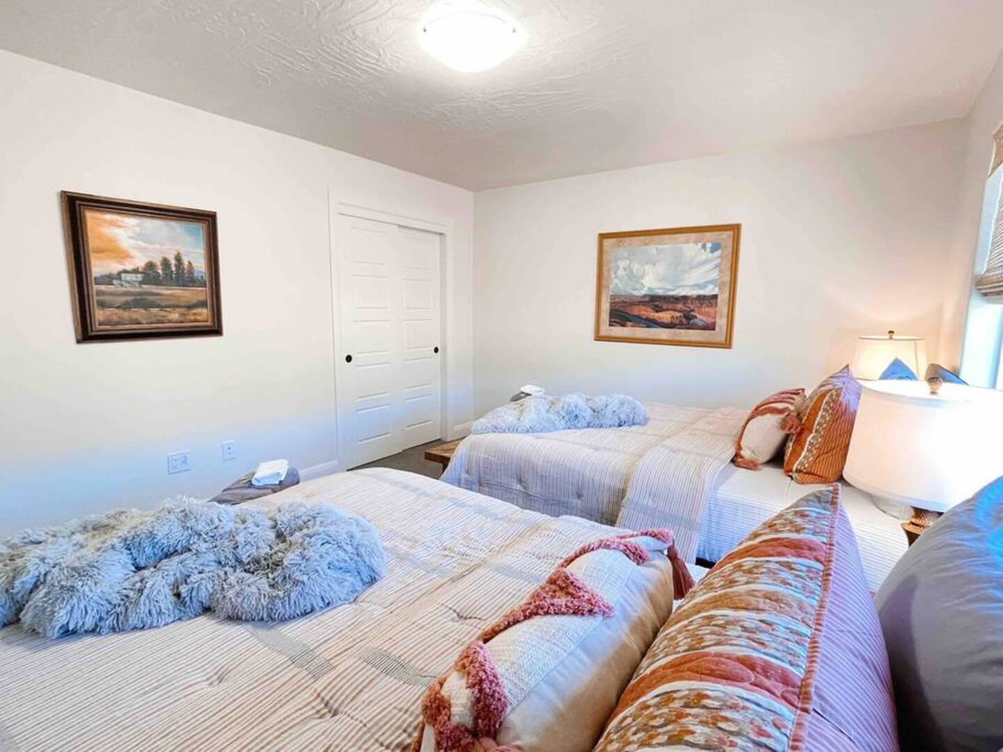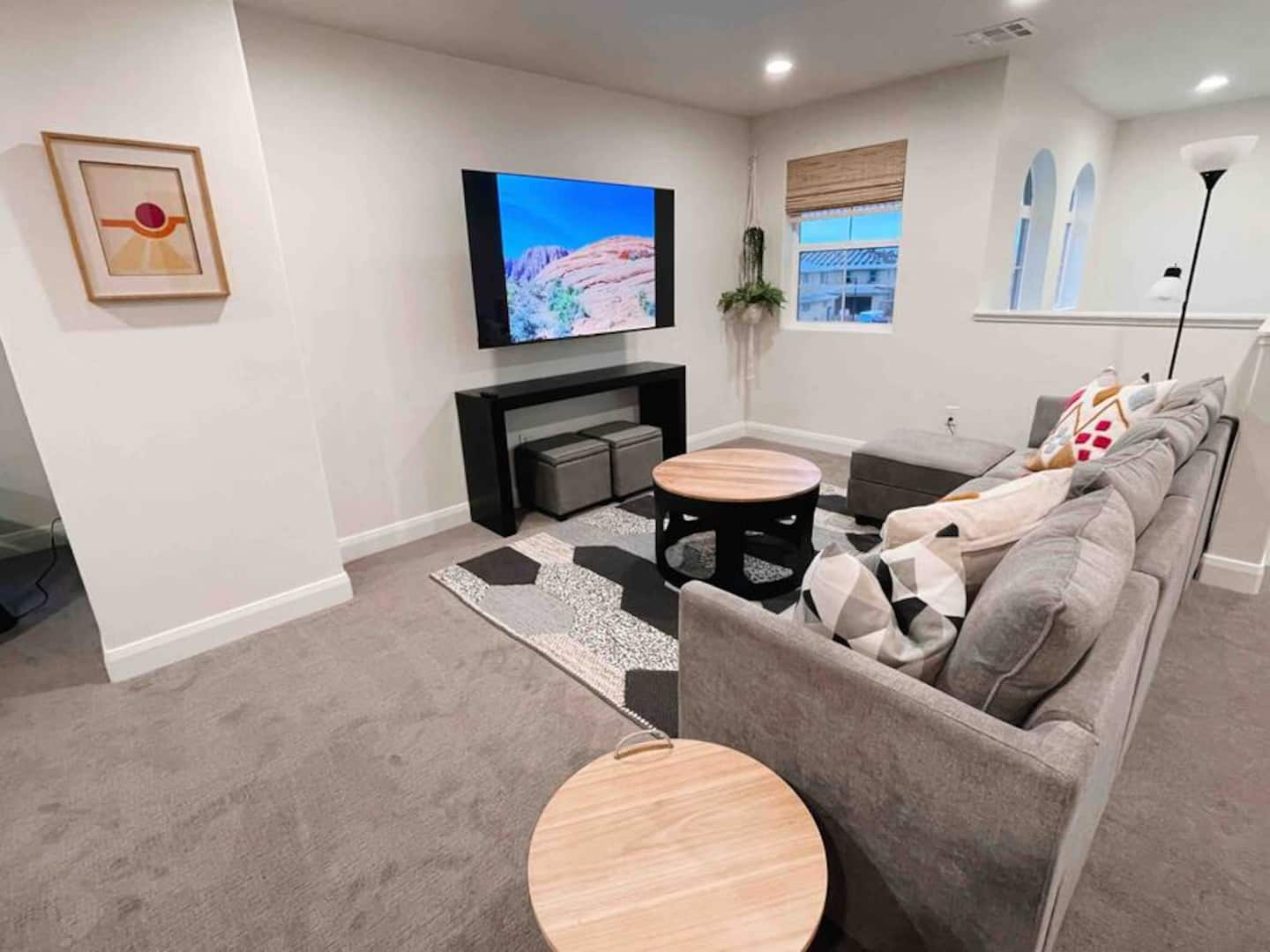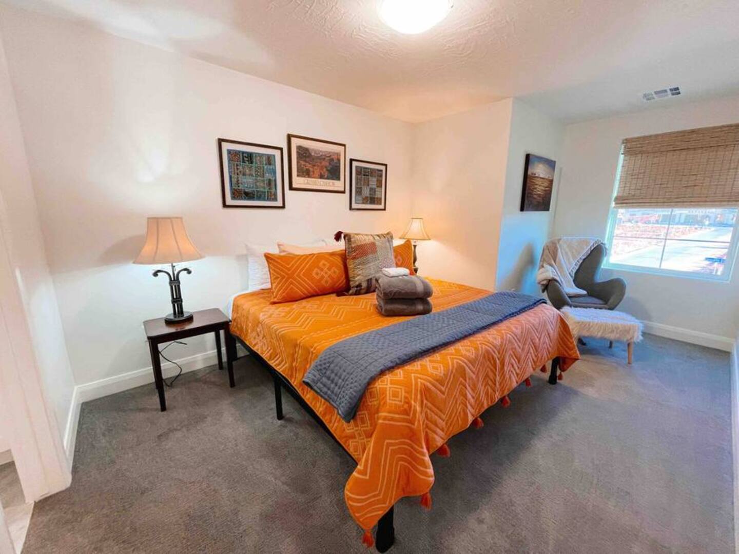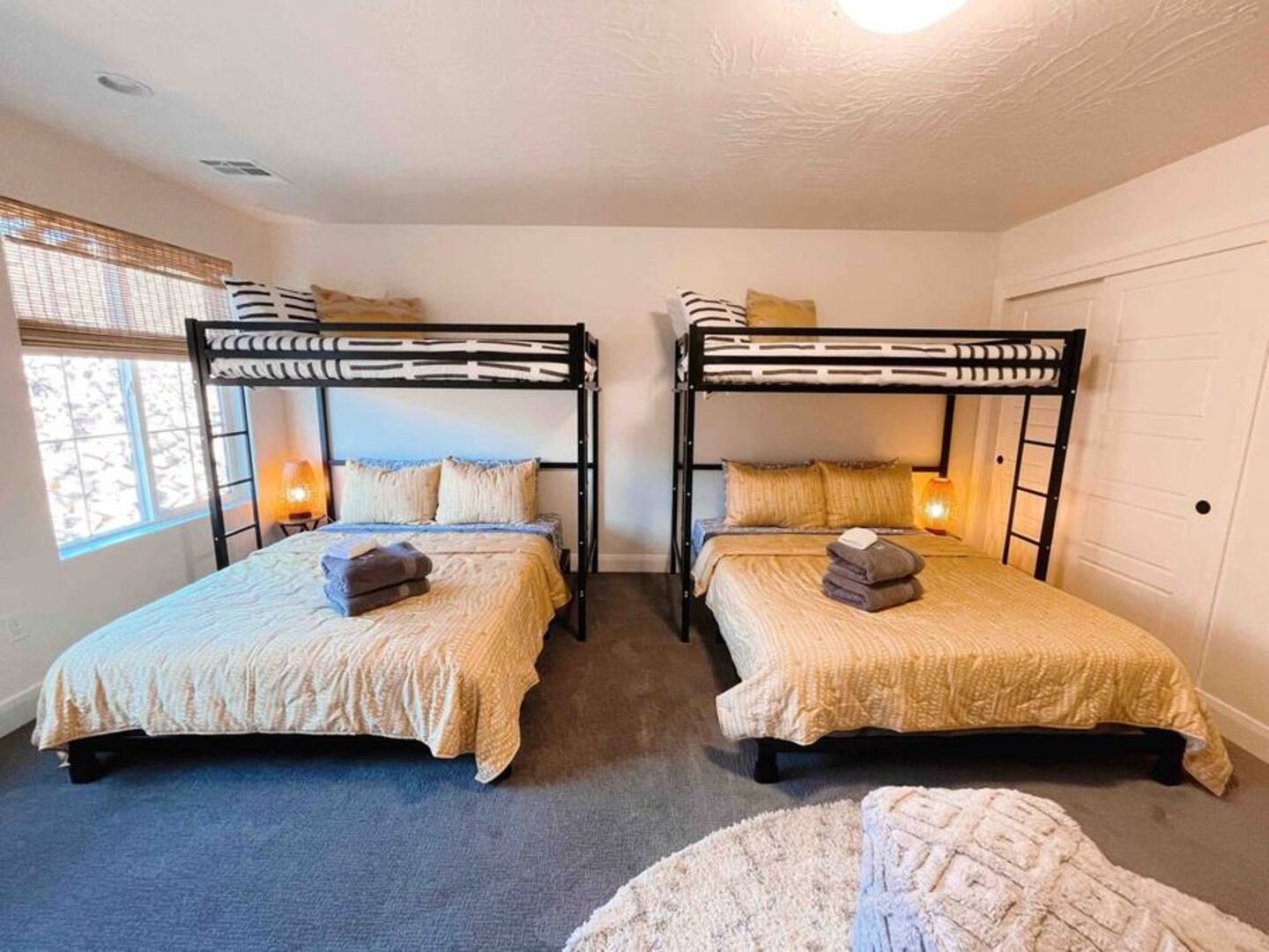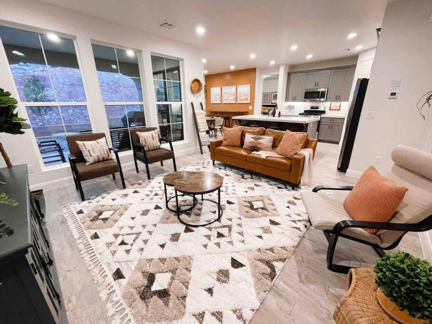 Experience the best of Southern Utah from the comfort of this townhome. Bicycle Boho near Zion's 2600 square feet boast 5 beds and 5 baths, first floor king suite and living space, a separate loft upstairs with air hockey, a reading nook, and smart TV. EV-ready. Hang out at our lazy river, pool, hot tub or splash pad with the whole family. Centrally located to Zion National Park, championship golf courses, miles of hiking and biking trails, Sand Hollow, Snow Canyon, and downtown St. George.