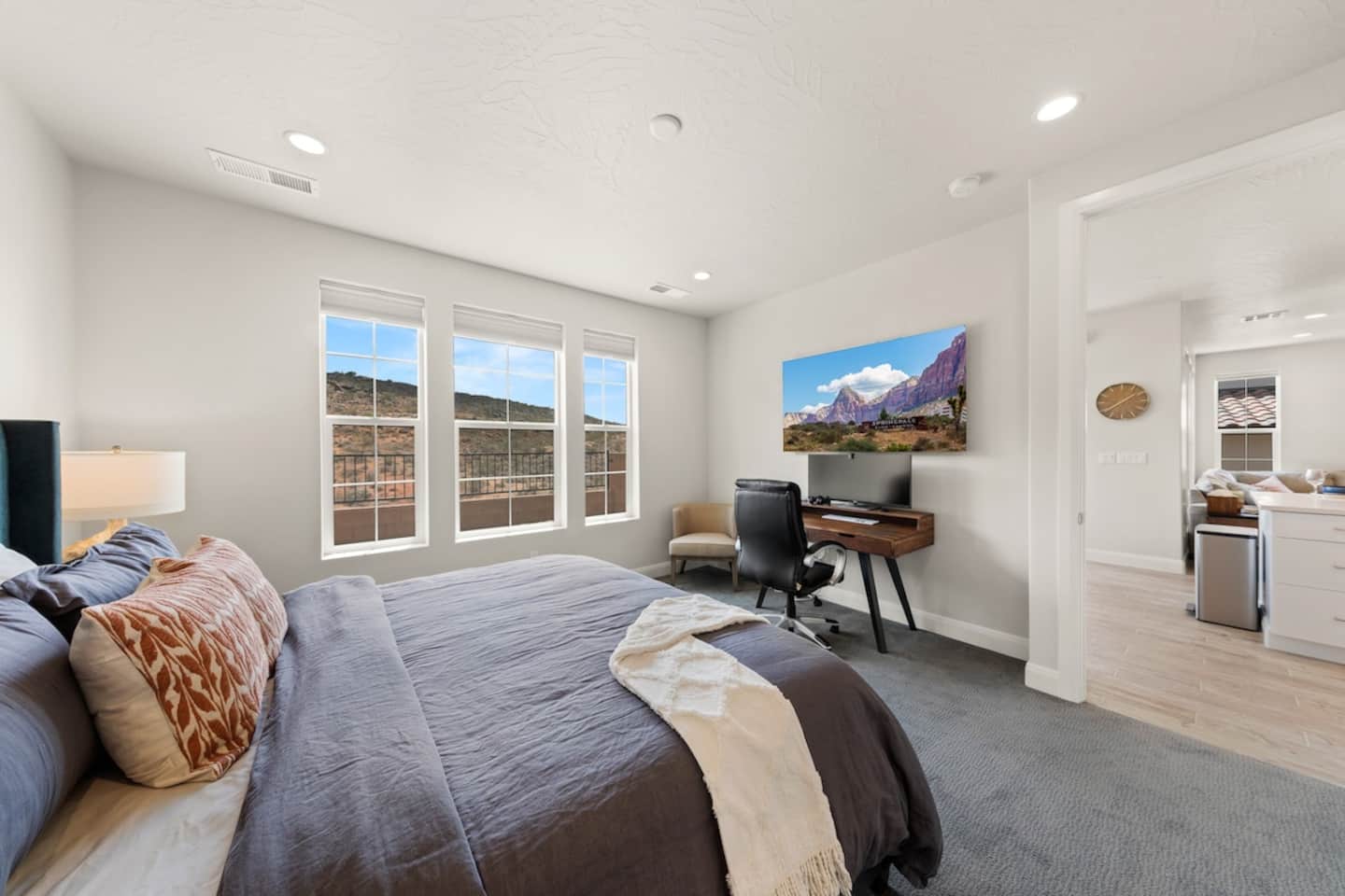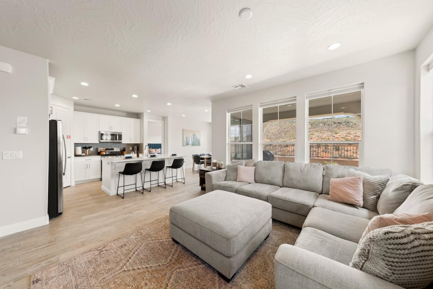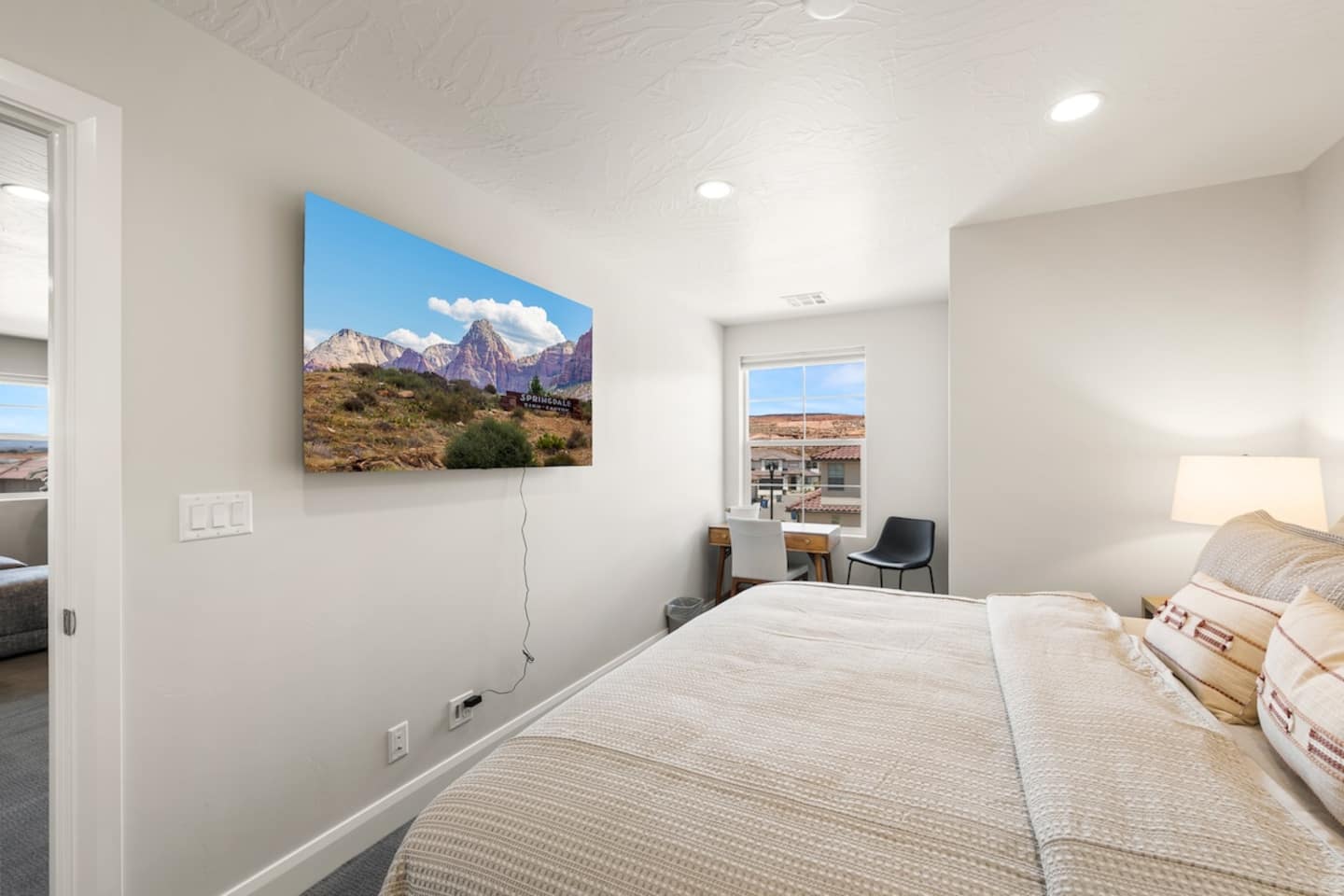 Experience the best of Southern Utah from the comfort of this townhome. Copper Cove's modern cozy 2600 sq ft boast 5 beds and 5 baths with first floor master and living space are perfect for those who don't do stairs. EV-ready. The 3 king suites, second living room, and chef stocked kitchen will entertain a crowd of all ages. Hang out at our lazy river, pool, hot tub, splash pad, or play pickle ball with the whole family. Centrally located to Zion, St. George, and championship golf courses.