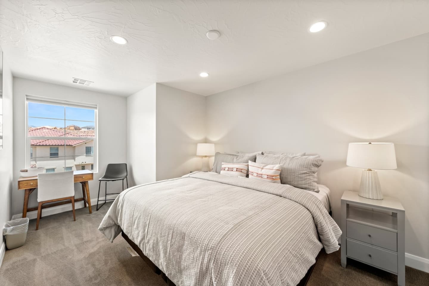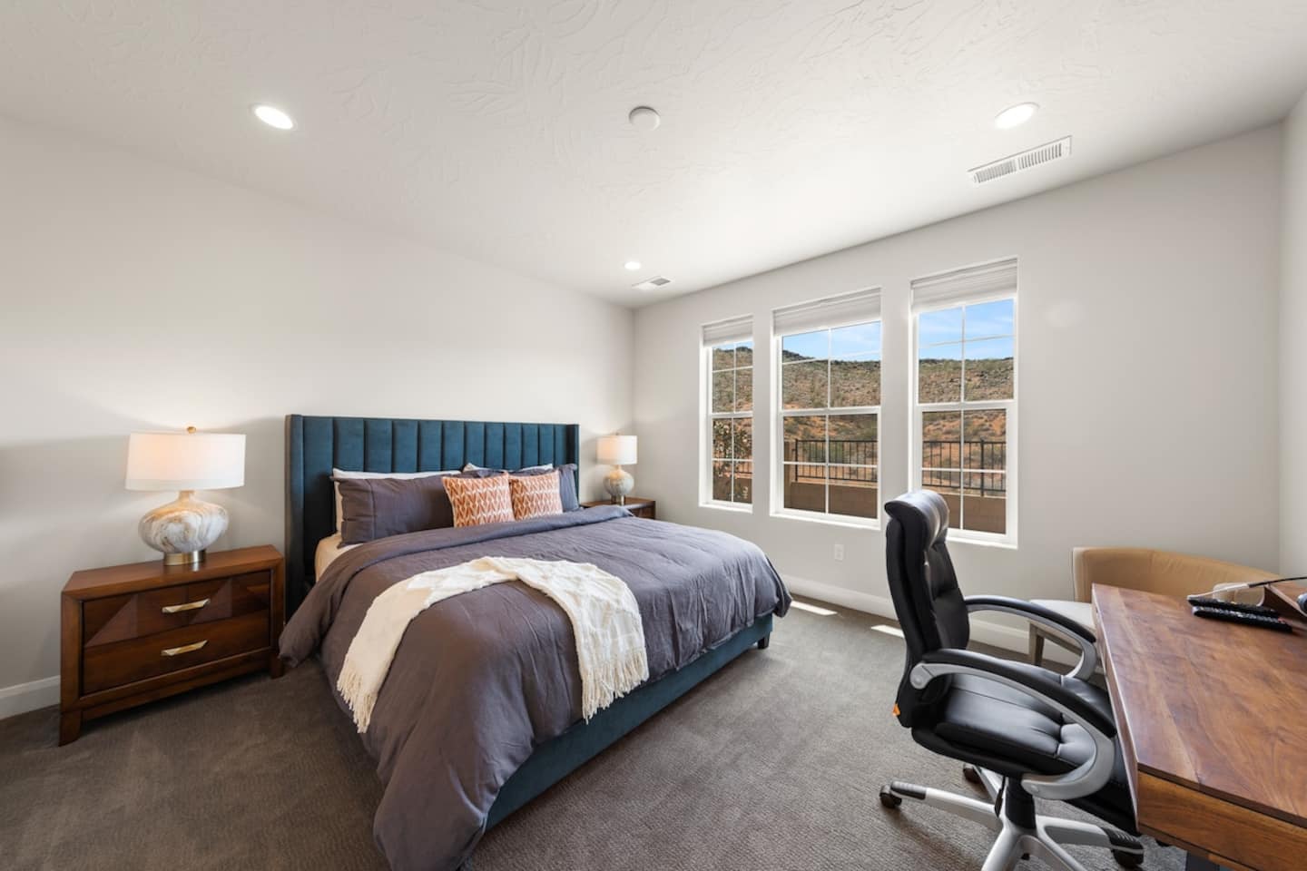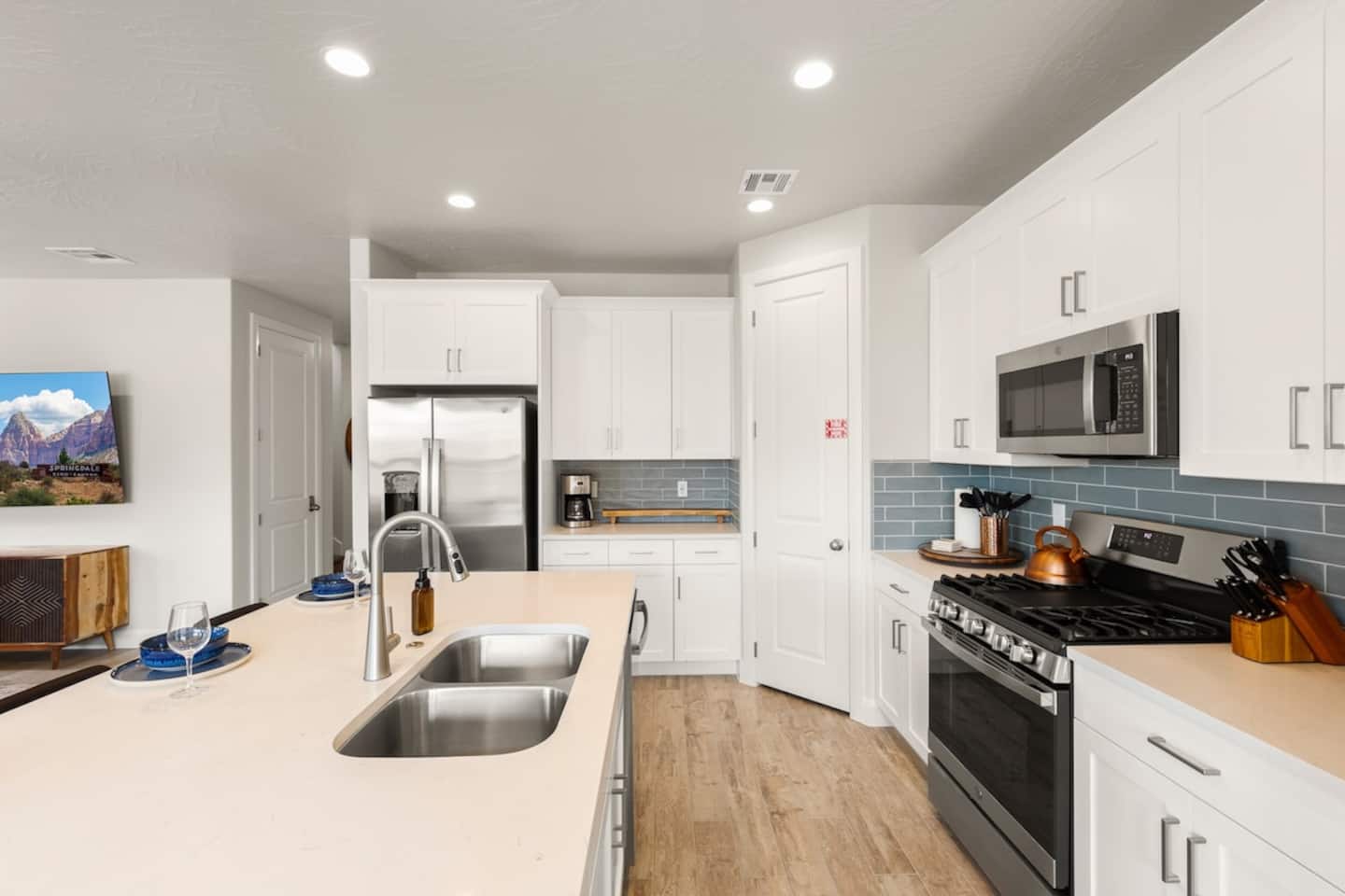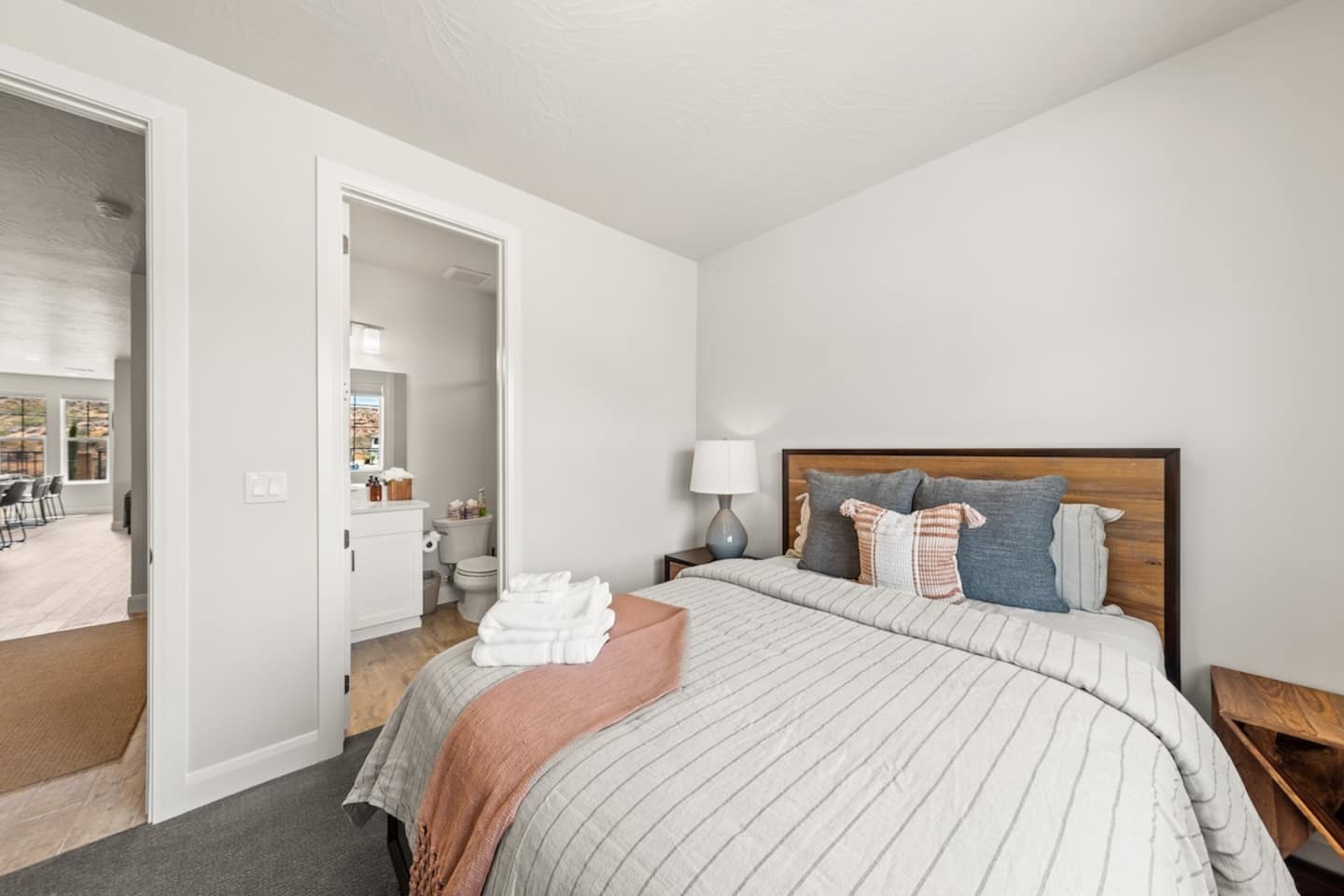 Experience the best of Southern Utah from the comfort of this townhome. Copper Cove's modern cozy 2600 sq ft boast 5 beds and 5 baths with first floor master and living space are perfect for those who don't do stairs. EV-ready. The 3 king suites, second living room, and chef stocked kitchen will entertain a crowd of all ages. Hang out at our lazy river, pool, hot tub, splash pad, or play pickle ball with the whole family. Centrally located to Zion, St. George, and championship golf courses.