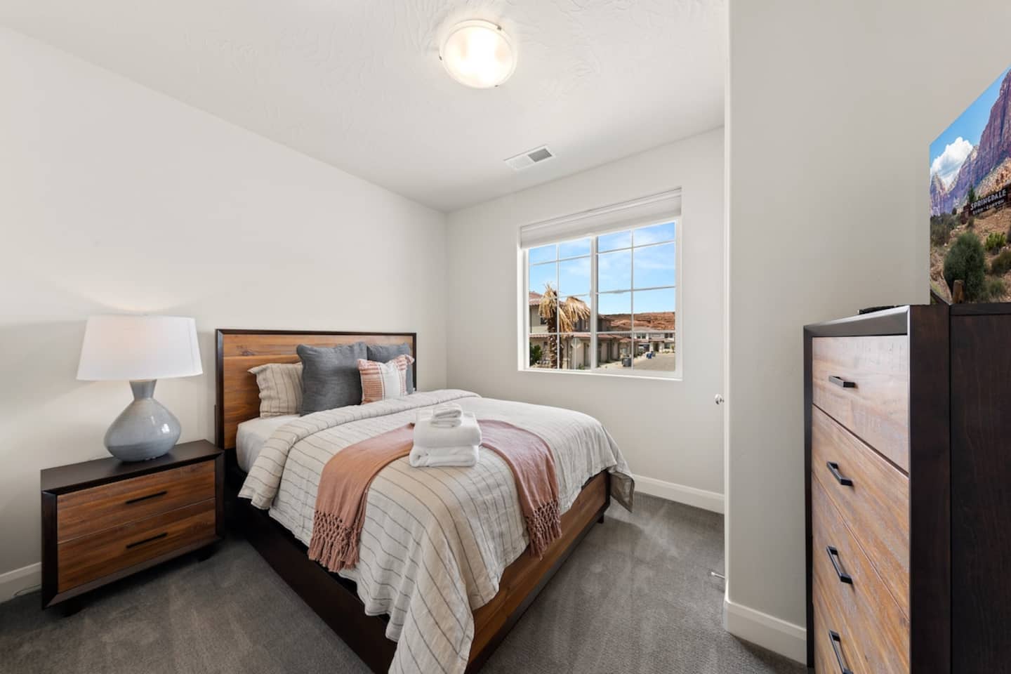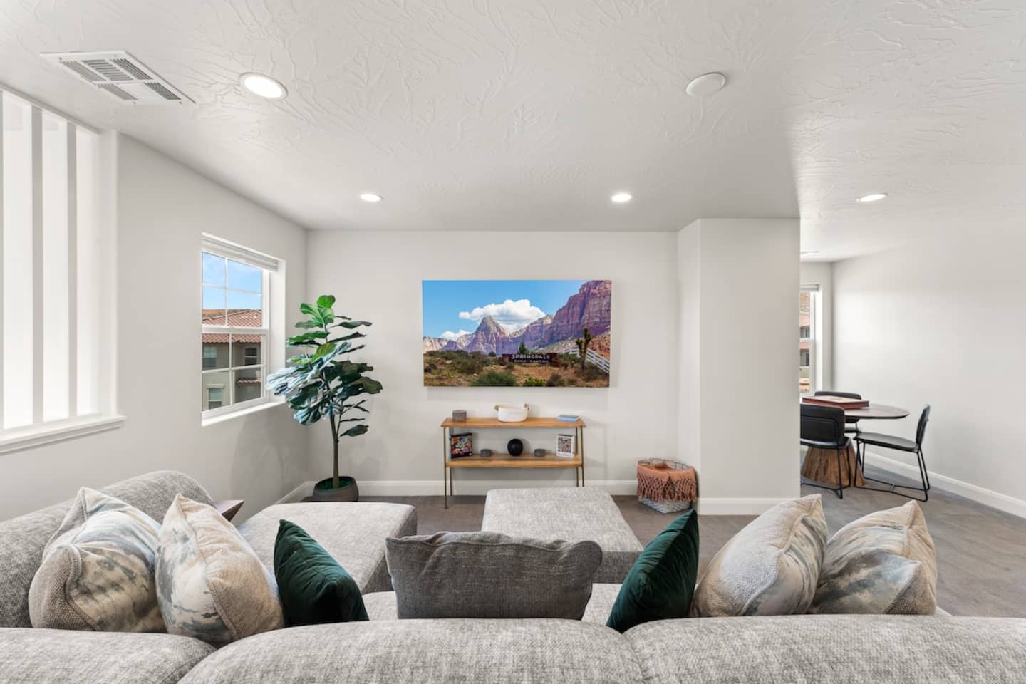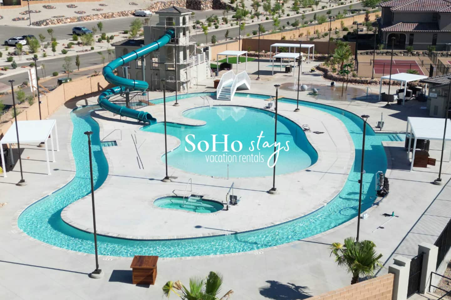 We are nestled in the picturesque red rocks of Southern Utah. Our resort style neighborhood offers a lazy river, pool with a water slide, 2 hot tubs, a splash pad, and 2 pickle ball courts. We are centrally located between all the attractions Southern Utah has to offer. When you feel like heading into town, downtown St. George is 10 minutes away by car to enjoy fine eateries and shopping. Looking for something to do after dinner, catch a live performance at Tuacahn Center for the Arts which is only 20 minutes away. Feeling adventurous? Book an organized side-by-side tour through the red rocks and sand dunes at Sand Hollow. Estimated Travel Times: Sand Hollow State Park – 20 minute drive Zion National Park – 45 minute drive Toquerville Falls – 20 minute drive Bryce Canyon National Park – 2 hour drive Gunlock State Park – 40 minute drive Snow Canyon State Park – 20 minute drive Quail Creek State Park – 15 minute drive