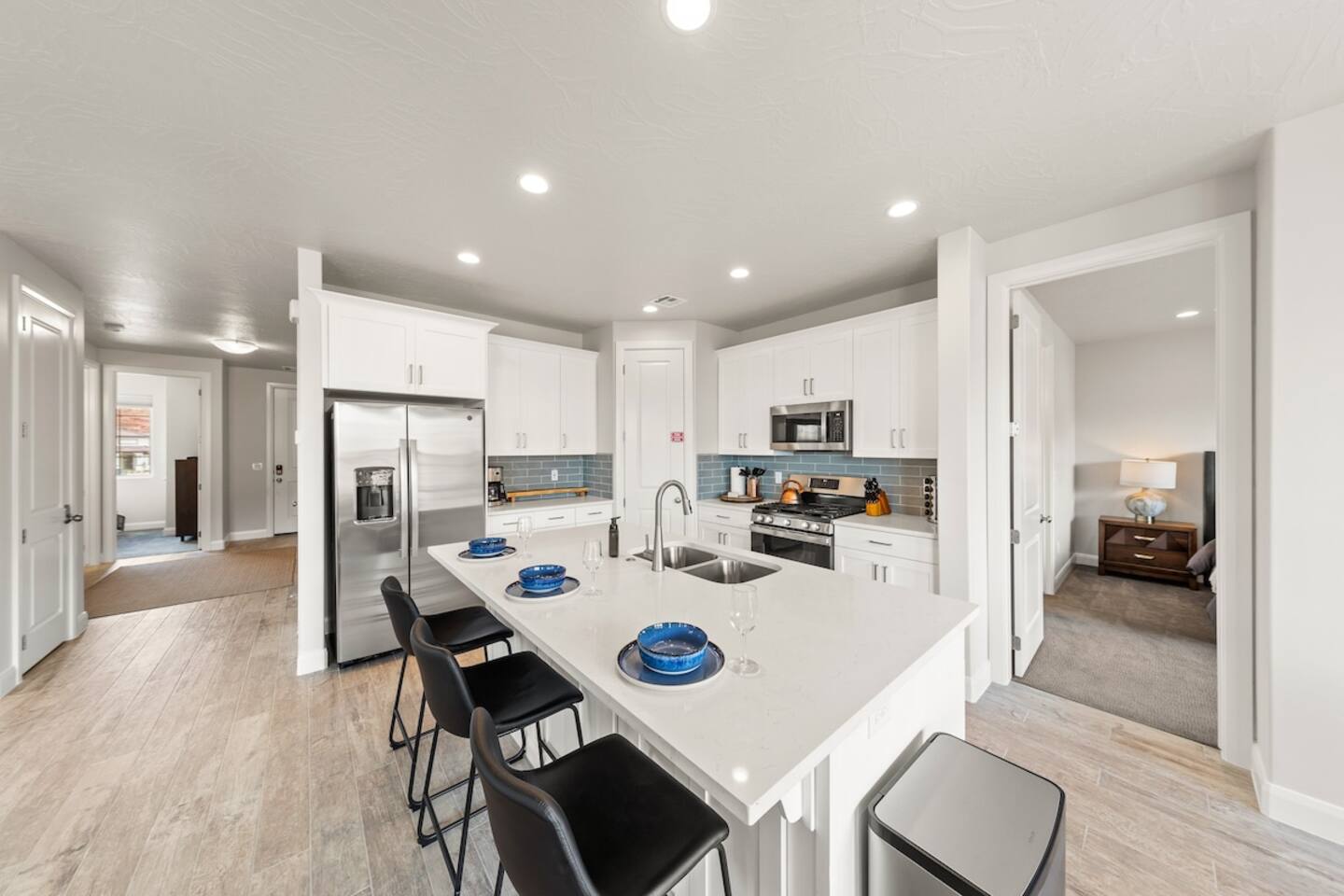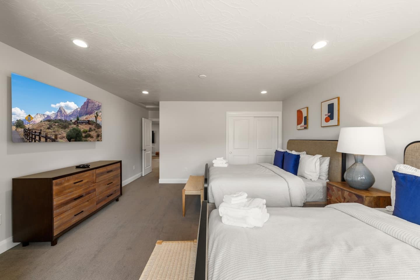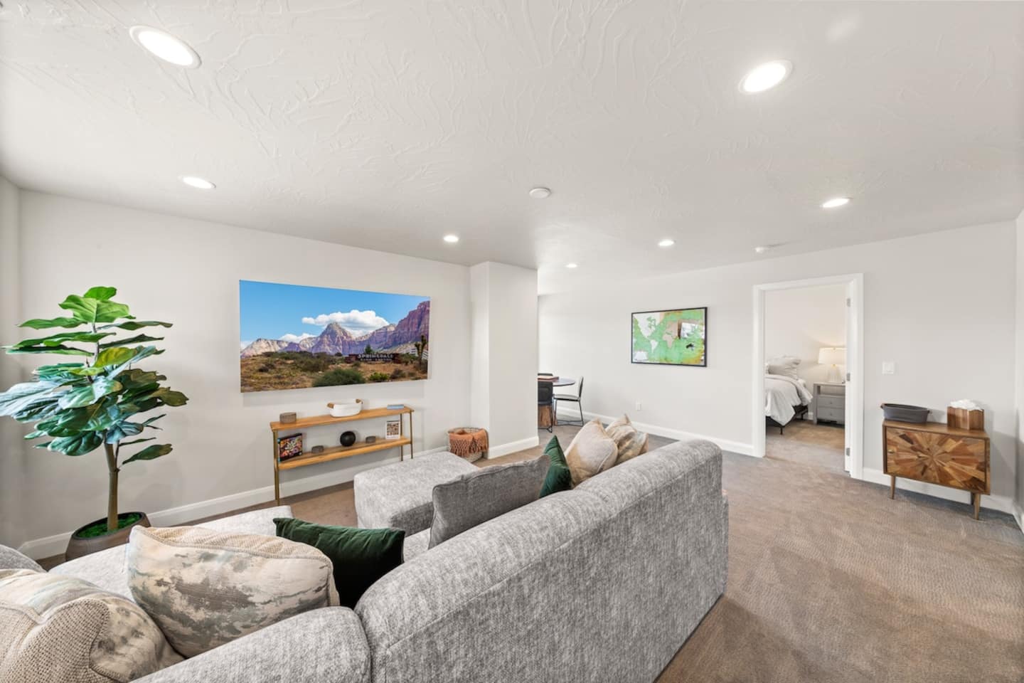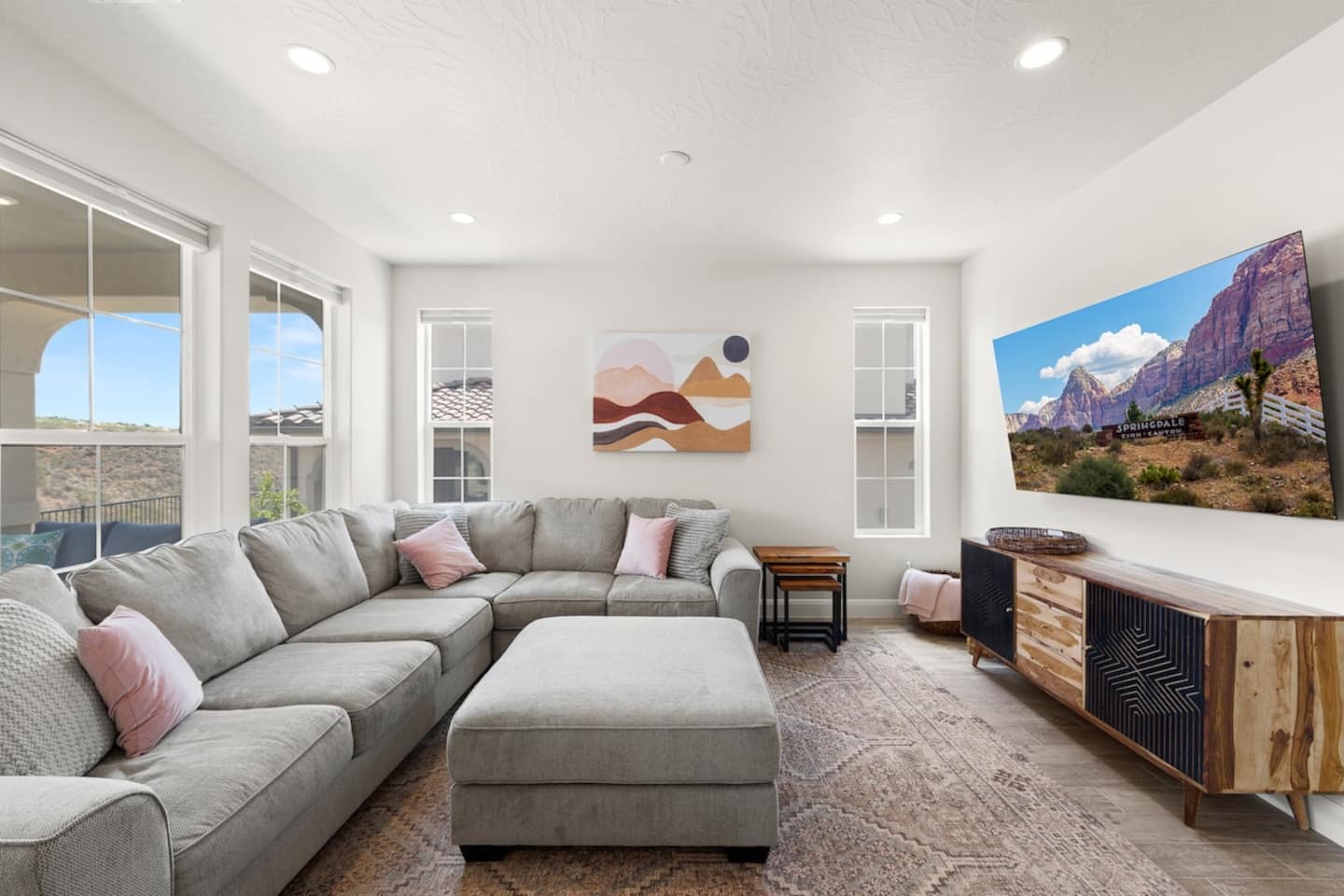 We are nestled in the picturesque red rocks of Southern Utah. Our resort style neighborhood offers a lazy river, pool with a water slide, 2 hot tubs, a splash pad, and 2 pickle ball courts. We are centrally located between all the attractions Southern Utah has to offer. When you feel like heading into town, downtown St. George is 10 minutes away by car to enjoy fine eateries and shopping. Looking for something to do after dinner, catch a live performance at Tuacahn Center for the Arts which is only 20 minutes away. Feeling adventurous? Book an organized side-by-side tour through the red rocks and sand dunes at Sand Hollow. Estimated Travel Times: Sand Hollow State Park – 20 minute drive Zion National Park – 45 minute drive Toquerville Falls – 20 minute drive Bryce Canyon National Park – 2 hour drive Gunlock State Park – 40 minute drive Snow Canyon State Park – 20 minute drive Quail Creek State Park – 15 minute drive