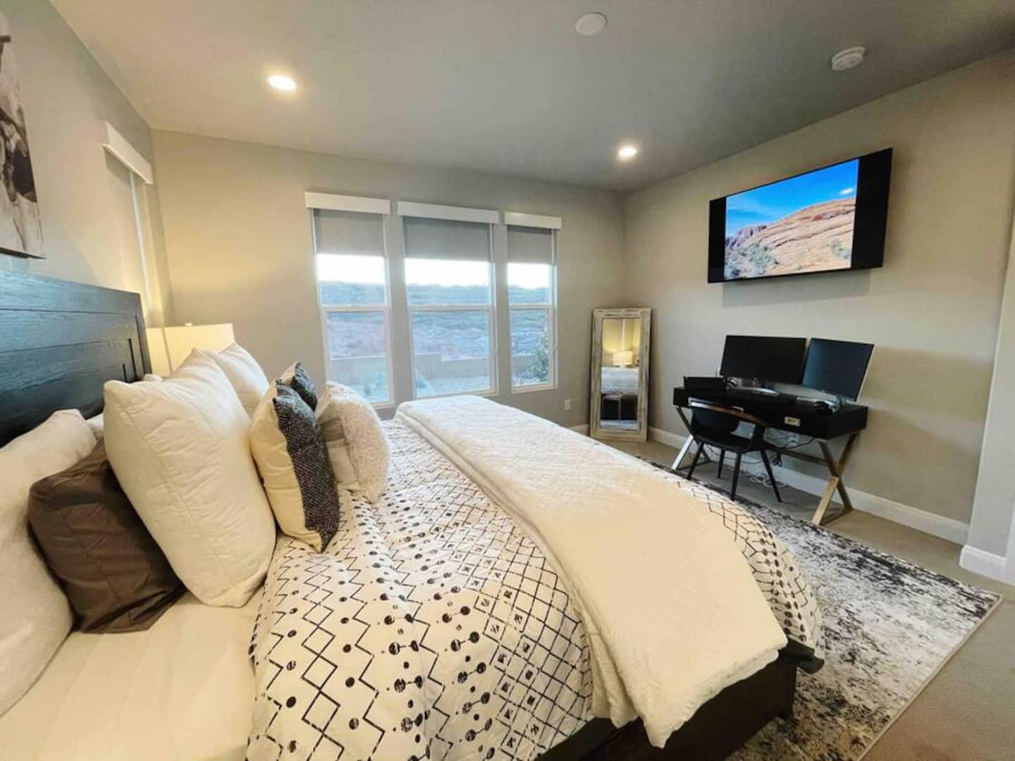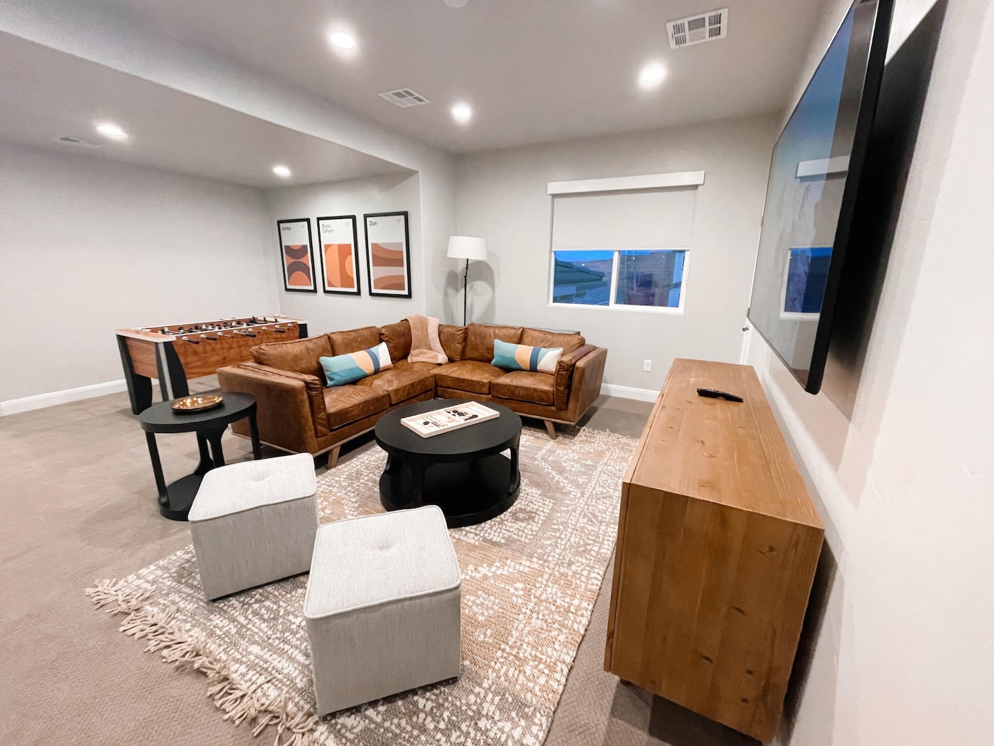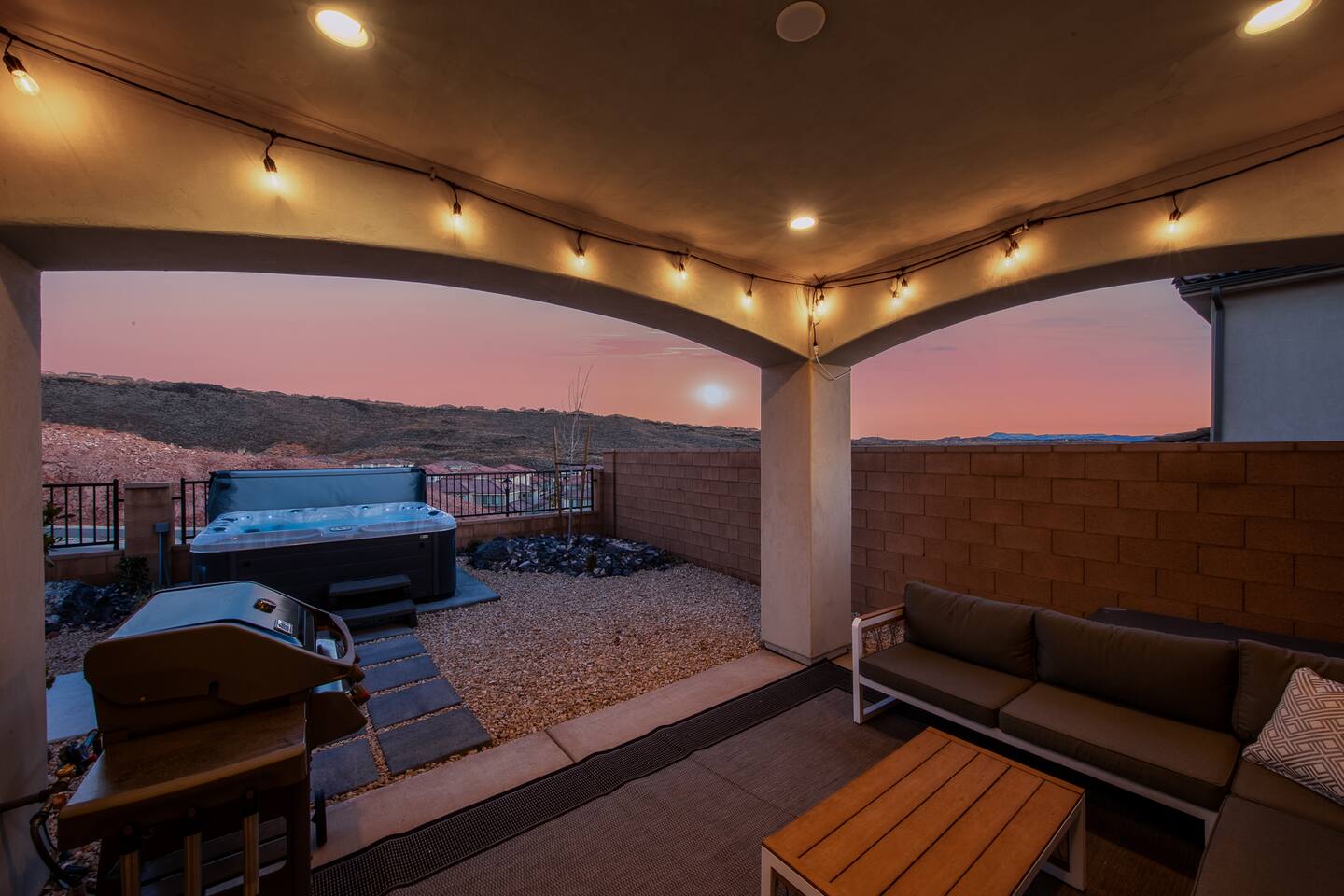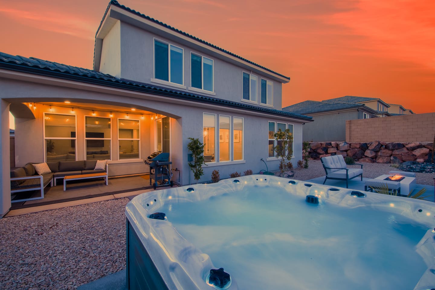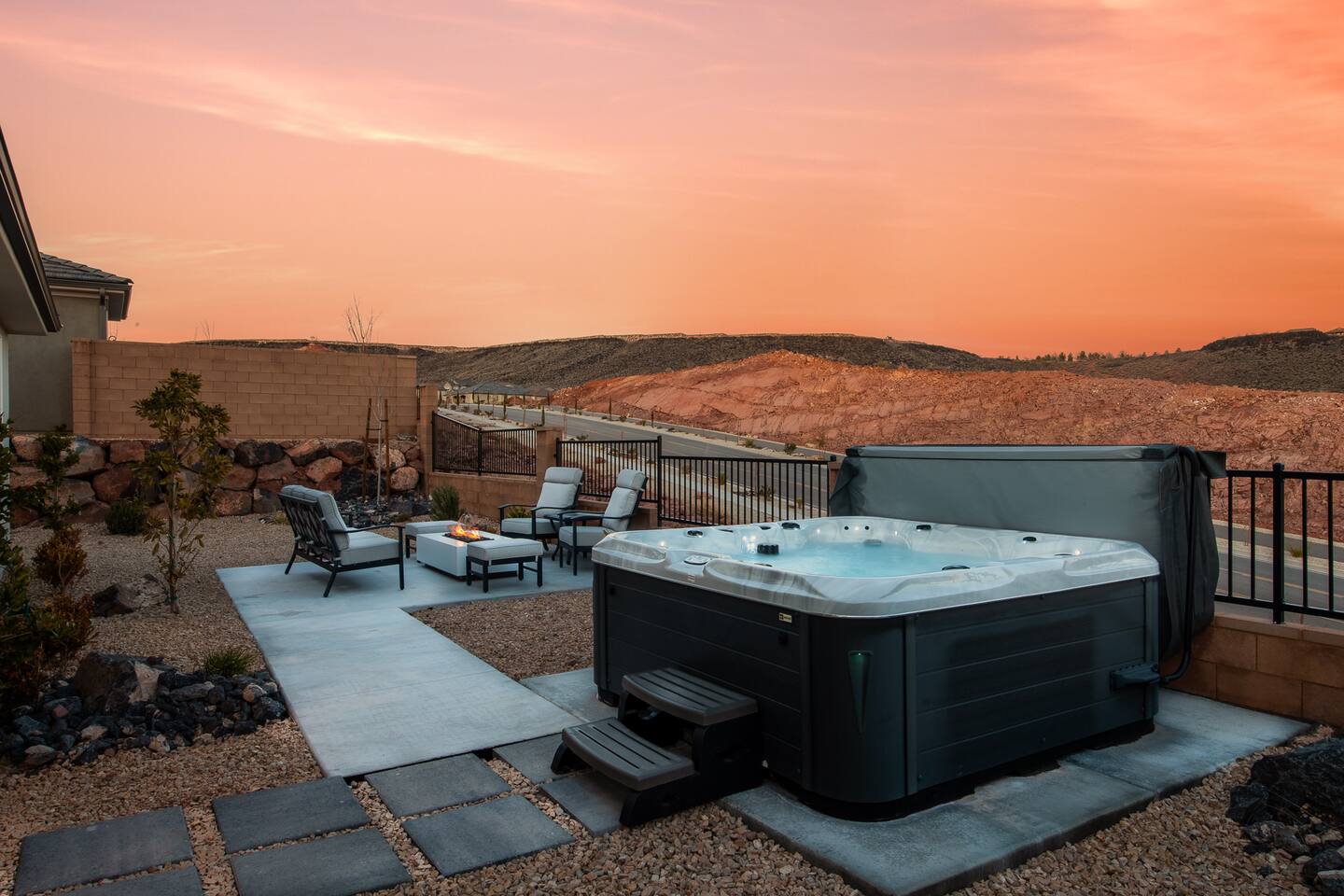 Experience the best of Southern Utah from the comfort of this home. Coral Casa near Zion’s 2600 square feet boast 5 bed and 4 bath, a separate loft upstairs with a 70” smart TV and foosball table. EV-ready. Private backyard with a hot tub and fire pit . Hang out at our neighborhood's lazy river, pool, hot tub, splash pad, or play pickle ball with the whole family. Centrally located to Zion National Park, championship golf courses, miles of hiking and biking trails, downtown St. George.