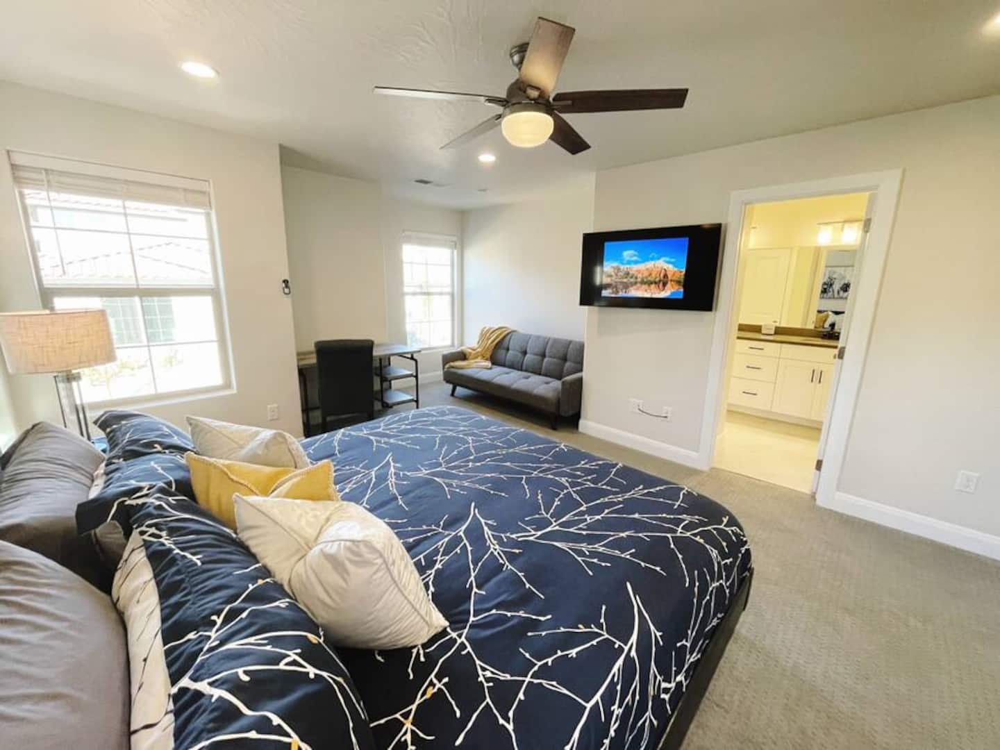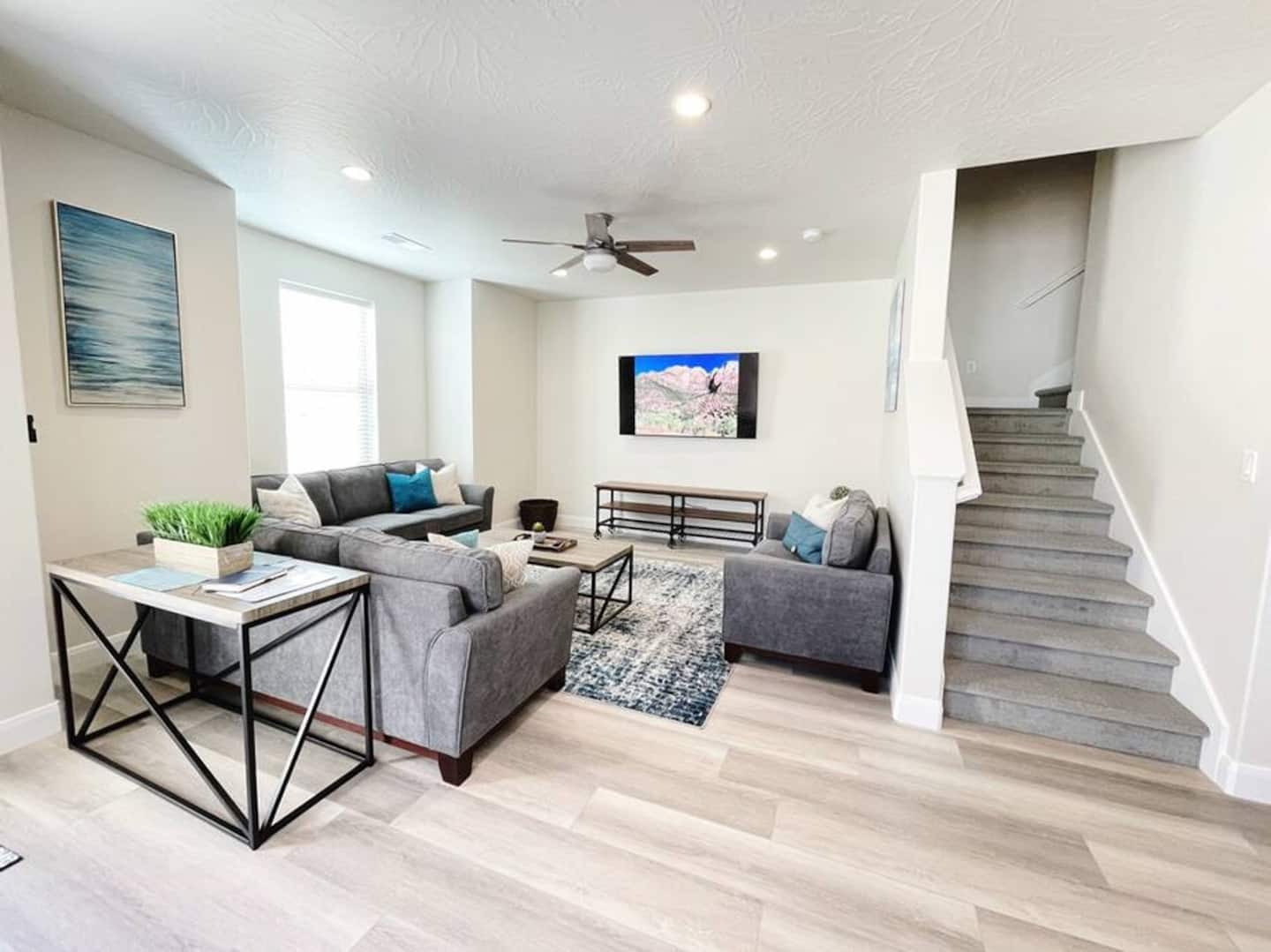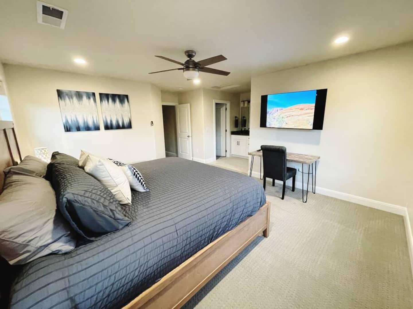 Experience the best of Southern Utah from the comfort of this townhome. Feels Like Home has 4 bed and 3.5 baths--two king suites with en-suite baths and two bunks rooms. Fiber wifi, toys, board games and large TVs please a crowd. Hang out at our lazy river, pool, hot tub, splash pad, or play pickle ball with the whole family. Centrally located to Zion National Park, championship golf courses, miles of hiking and biking trails, Sand Hollow, downtown St. George. EV-ready.