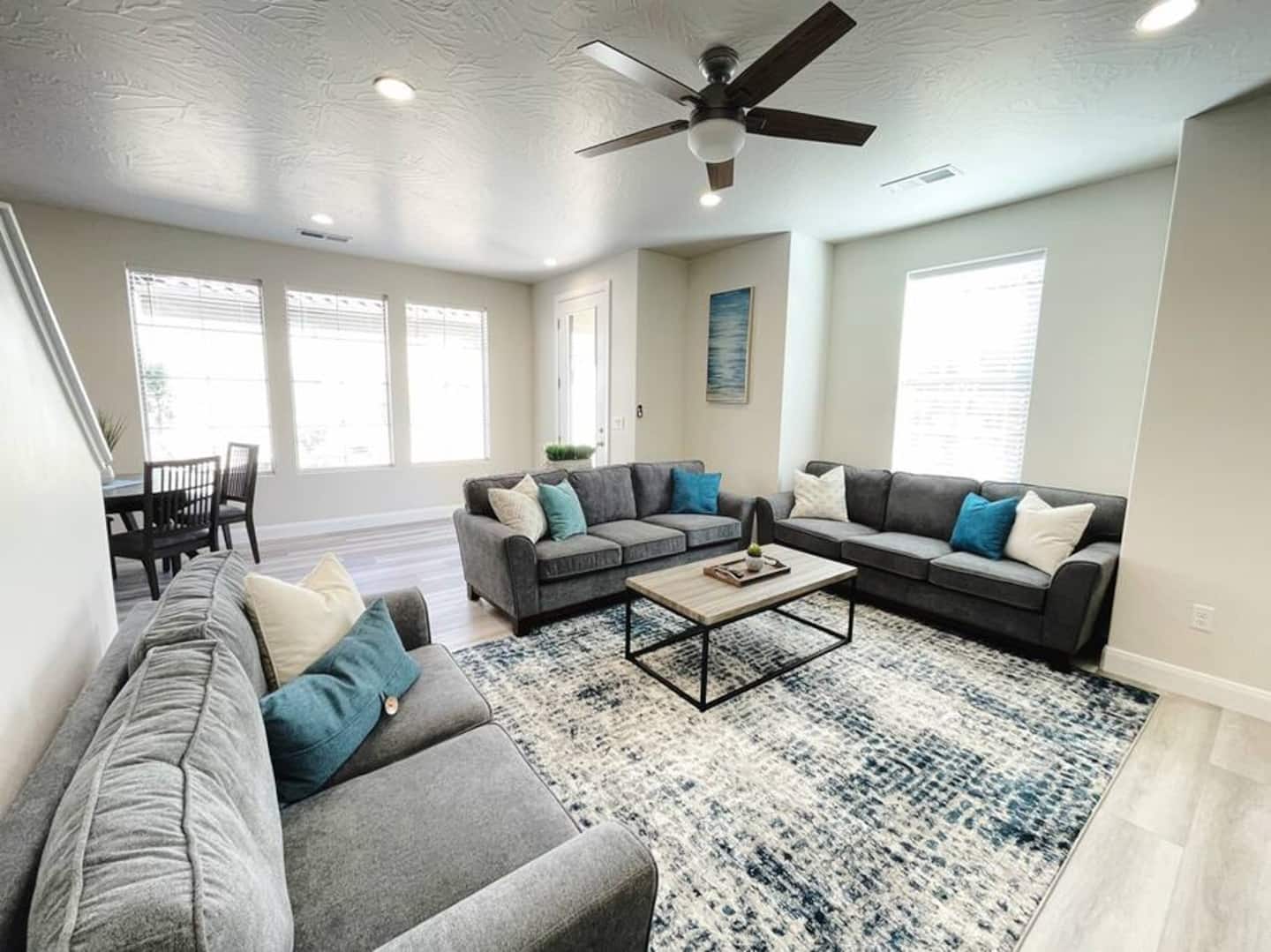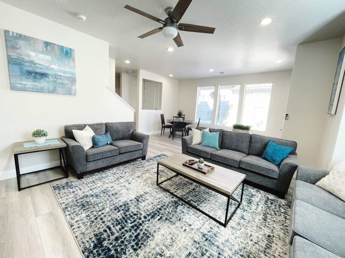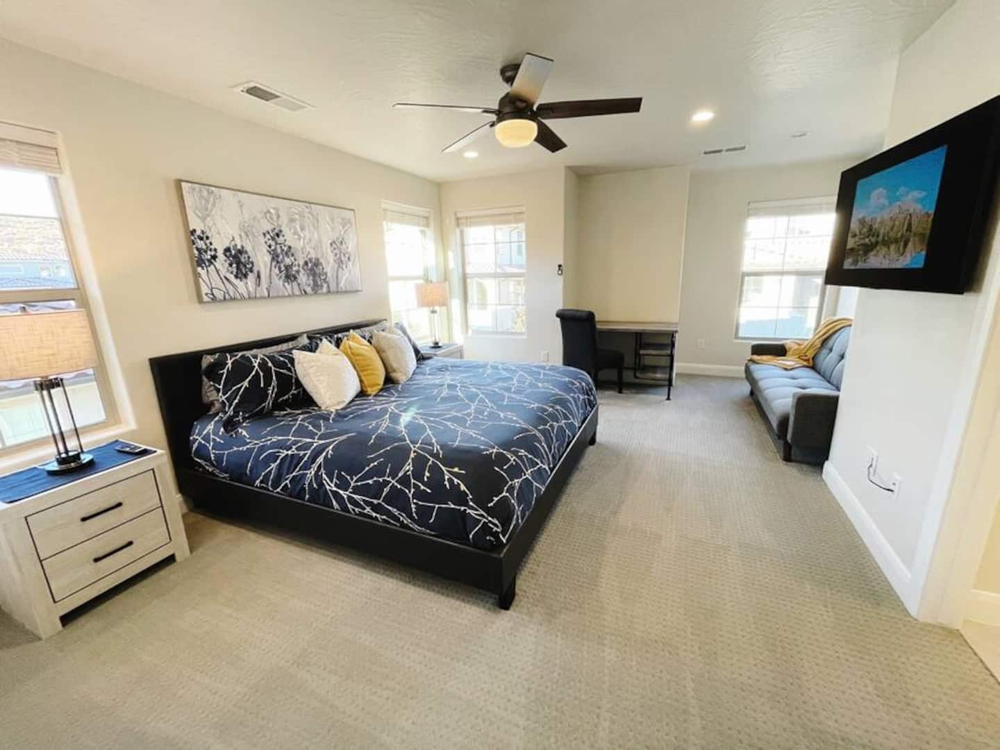 Experience the best of Southern Utah from the comfort of this townhome. Feels Like Home has 4 bed and 3.5 baths--two king suites with en-suite baths and two bunks rooms. Fiber wifi, toys, board games and large TVs please a crowd. Hang out at our lazy river, pool, hot tub, splash pad, or play pickle ball with the whole family. Centrally located to Zion National Park, championship golf courses, miles of hiking and biking trails, Sand Hollow, downtown St. George. EV-ready.