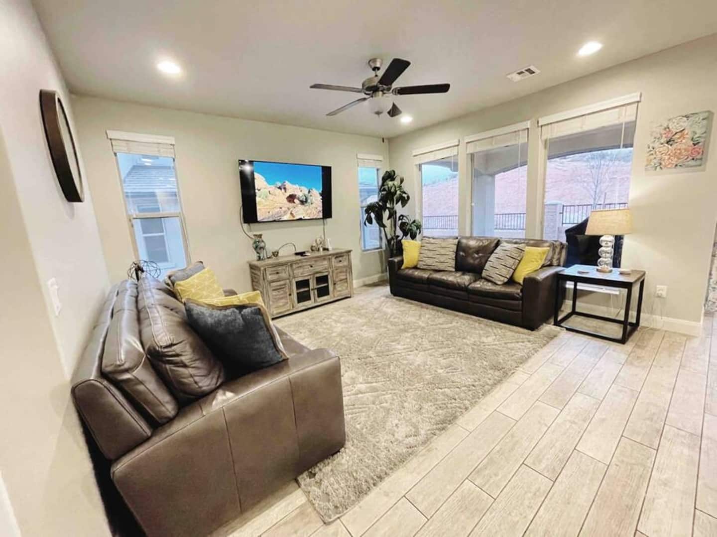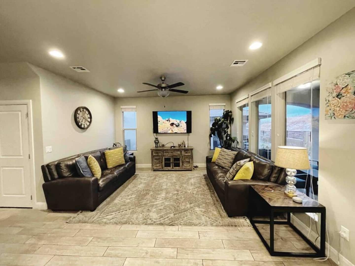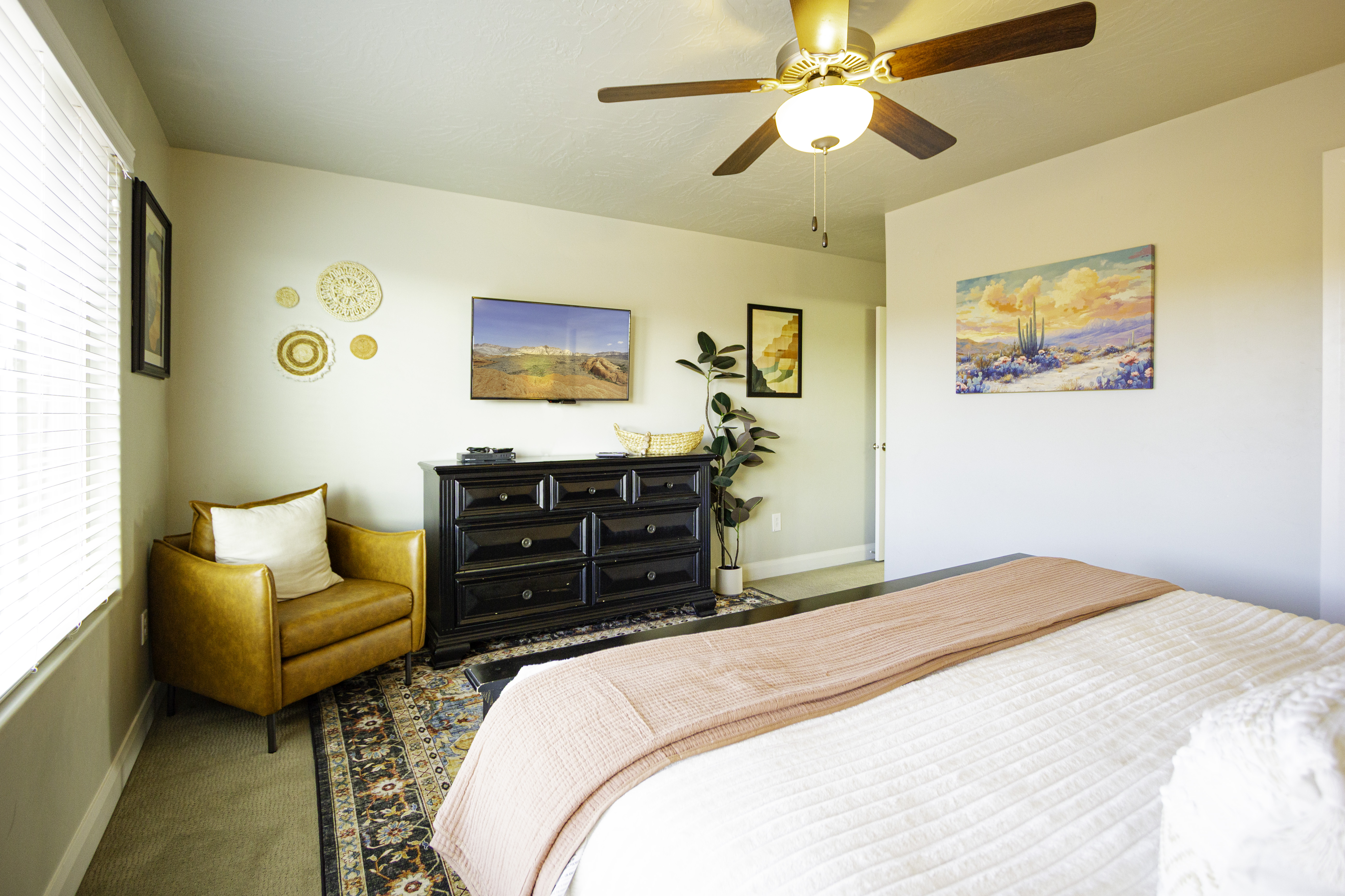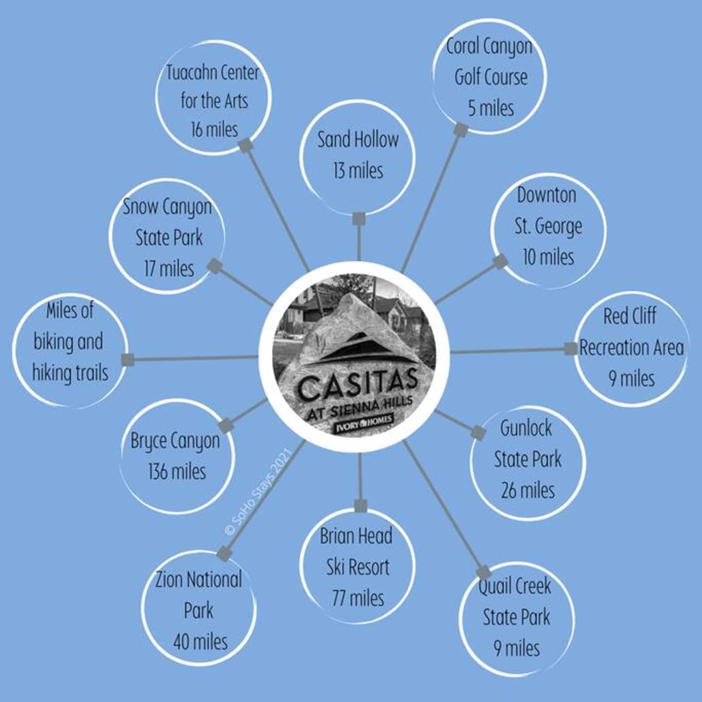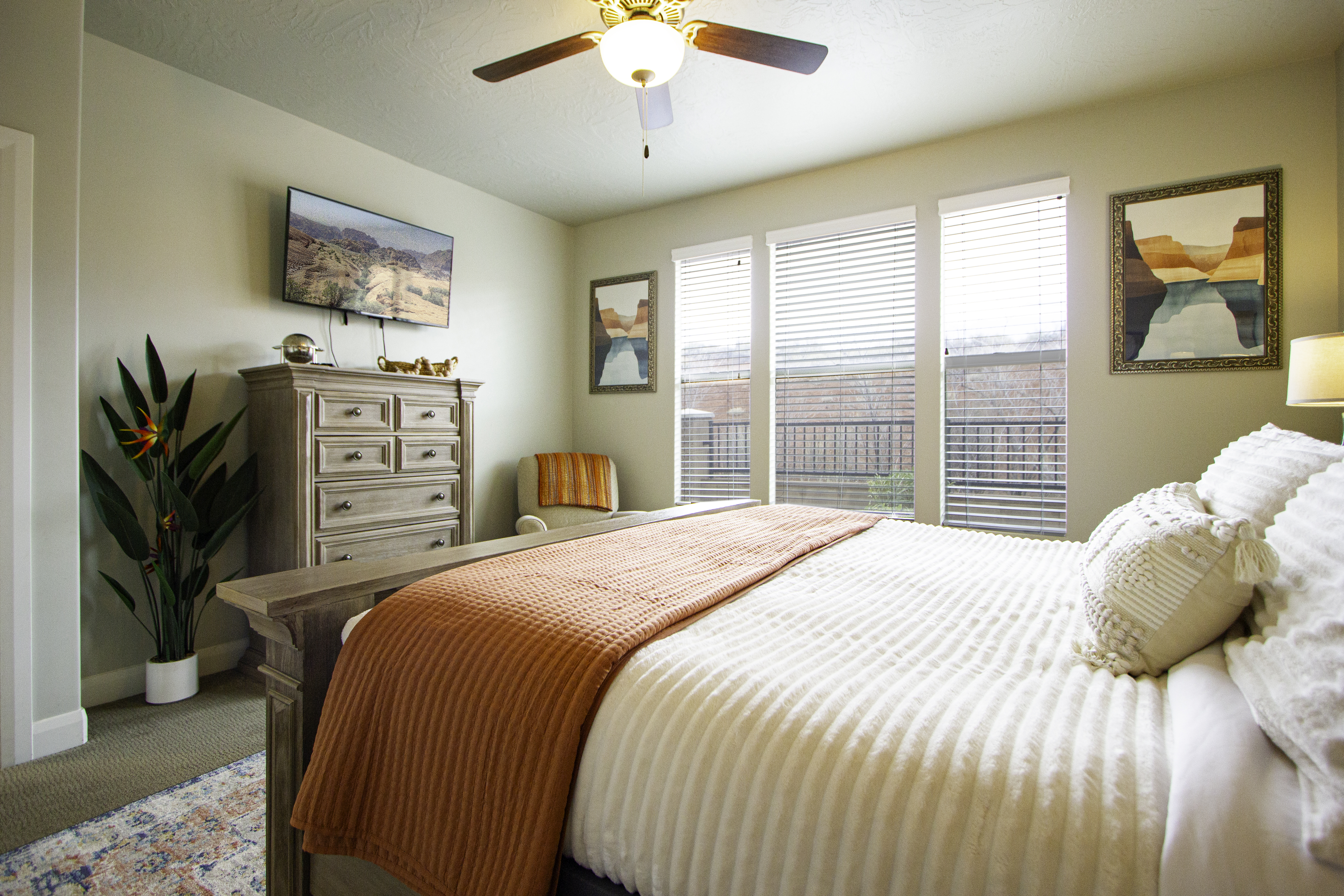 We are nestled in the picturesque red rocks of Southern Utah. Our resort style neighborhood offers a comunity swimming pool and hot tub. We are centrally located between all the attractions Southern Utah has to offer. When you feel like heading into town, downtown St. George is 10 minutes away by car to enjoy fine eateries and shopping. Looking for something to do after dinner, catch a live performance at Tuacahn Center for the Arts which is only 20 minutes away. Feeling adventurous? Book an organized side-by-side tour through the red rocks and sand dunes at Sand Hollow. Estimated Travel Times: Sand Hollow State Park – 20 minute drive Zion National Park – 45 minute drive Toquerville Falls – 20 minute drive Bryce Canyon National Park – 2 hour drive Gunlock State Park – 40 minute drive Snow Canyon State Park – 20 minute drive Quail Creek State Park – 15 minute drive