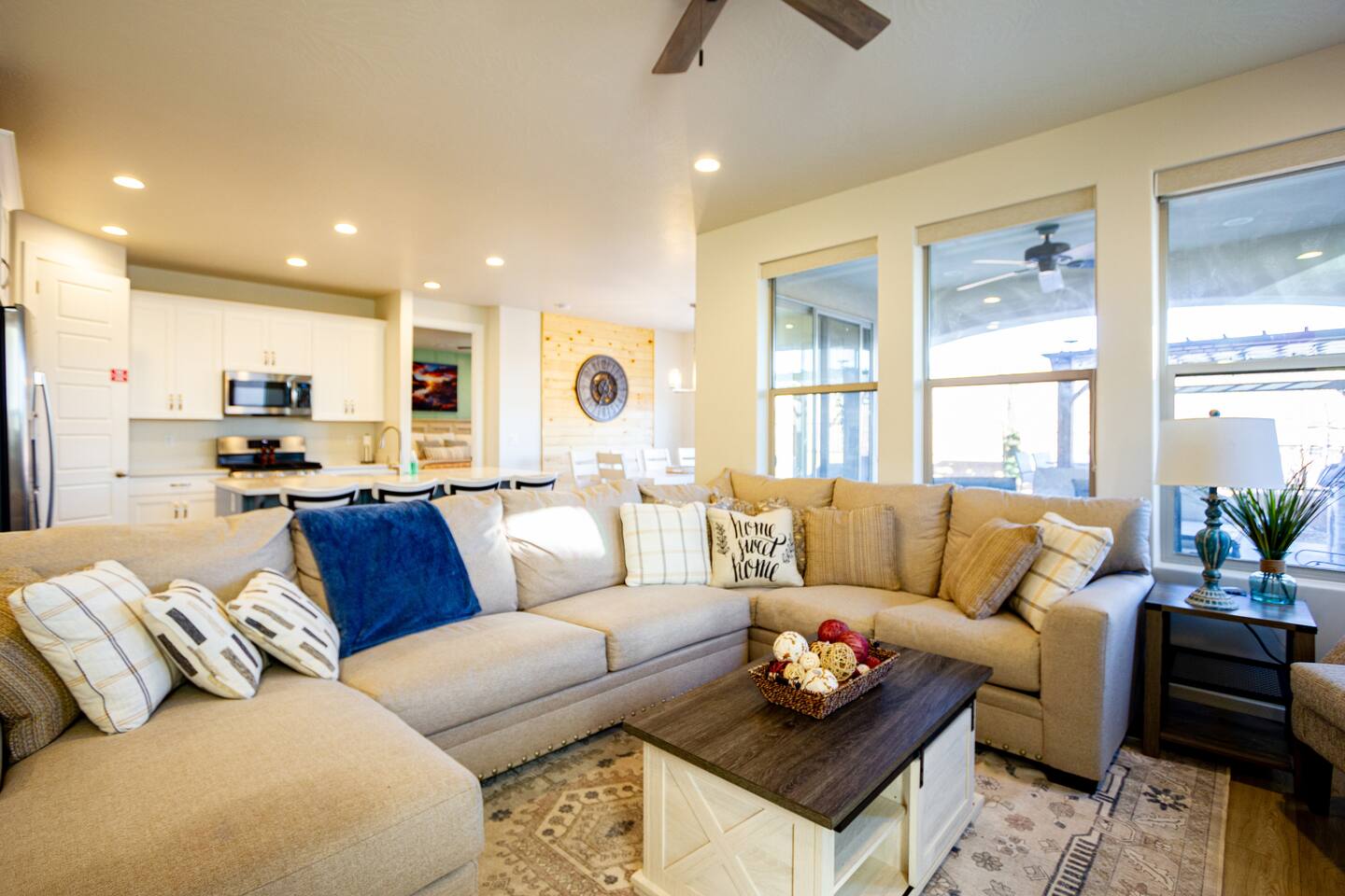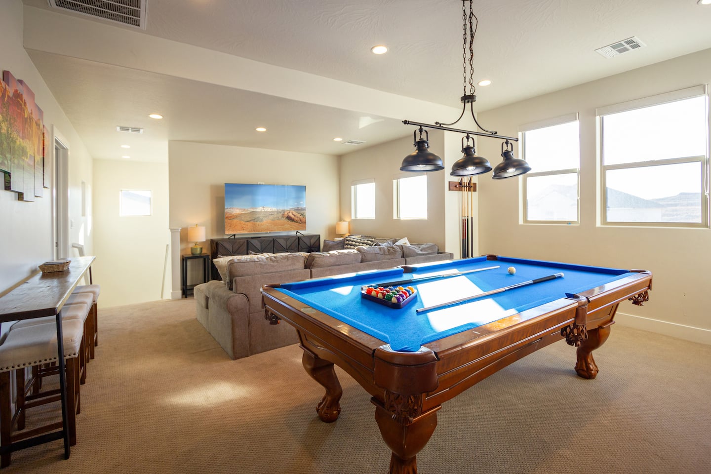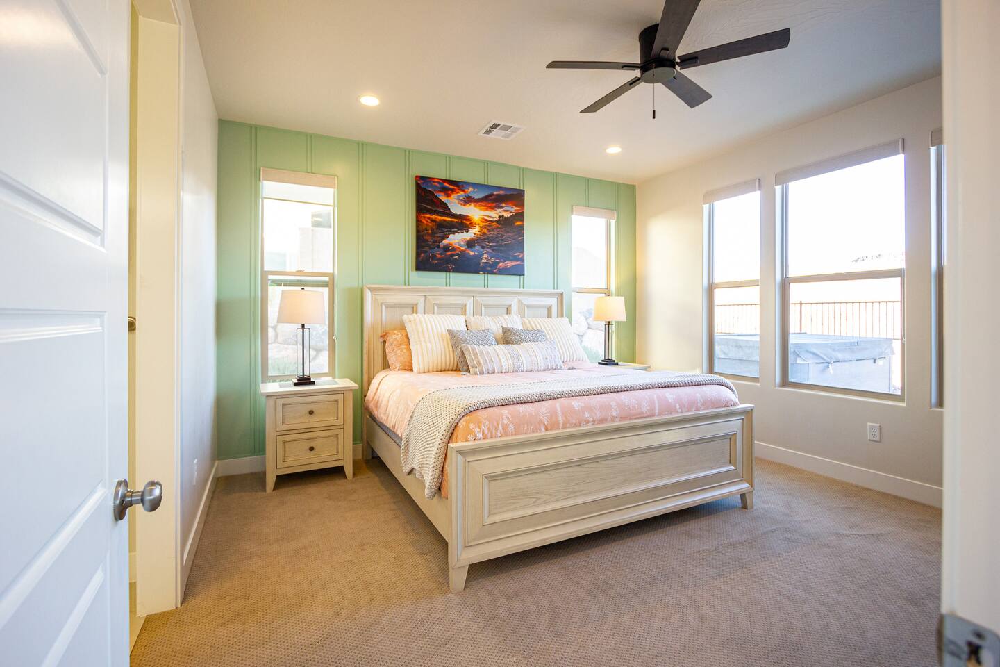 Step outside to your own outdoor oasis, complete with a sparkling hot tub, firepit, and outdoor kitchen area perfect for unforgettable evenings. Enjoy the sun at our community lazy river, pool, hot tub, and splash pad, including a 3 story waterslide, or play pickleball with the whole family Nestled in a prime location near Zion National Park, Sand Hollow, Snow Canyon, championship golf courses, miles of hiking and biking trails, and downtown St George; this property is ideal for family reunions, retreats, or celebrations.Notes