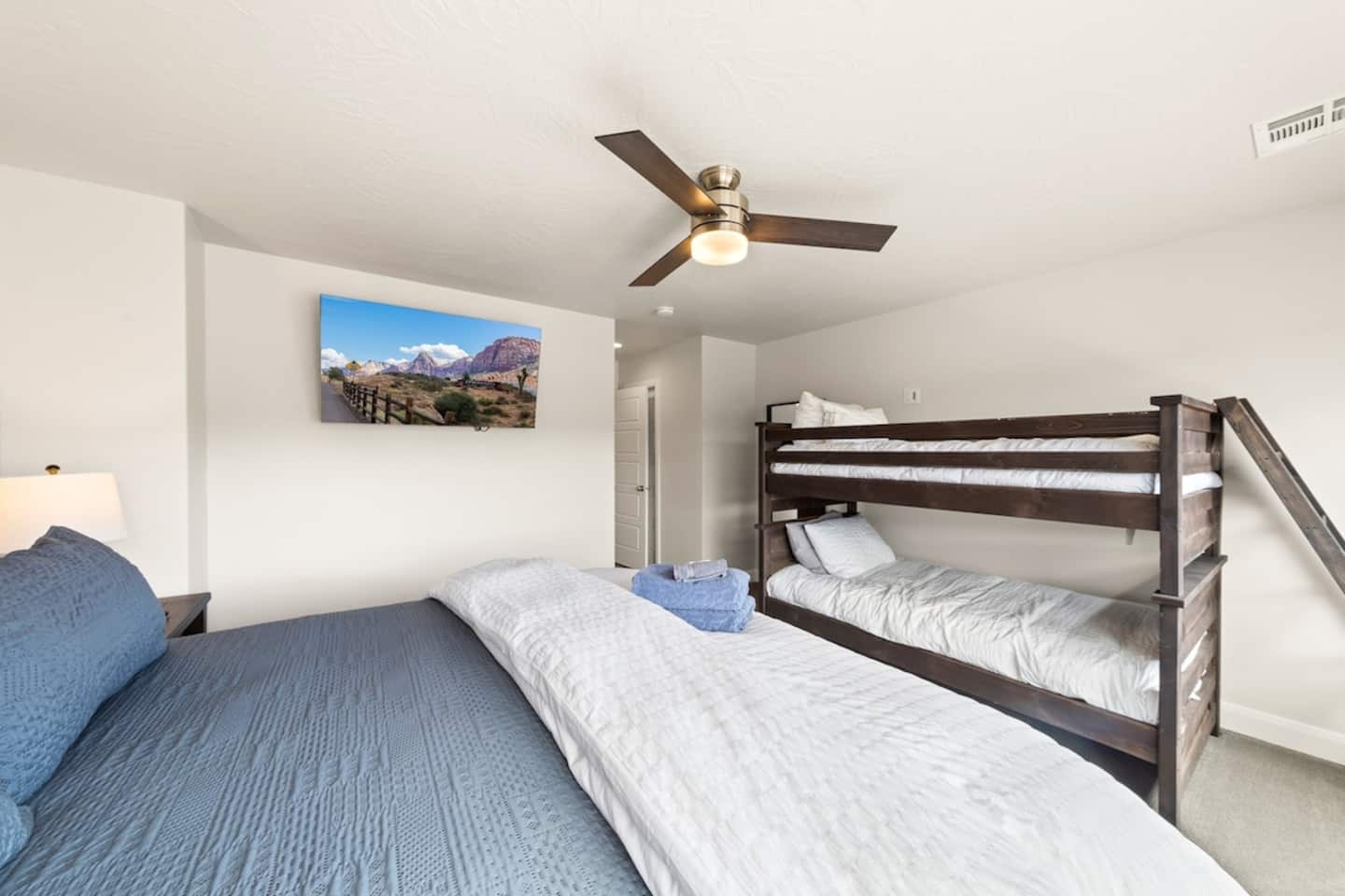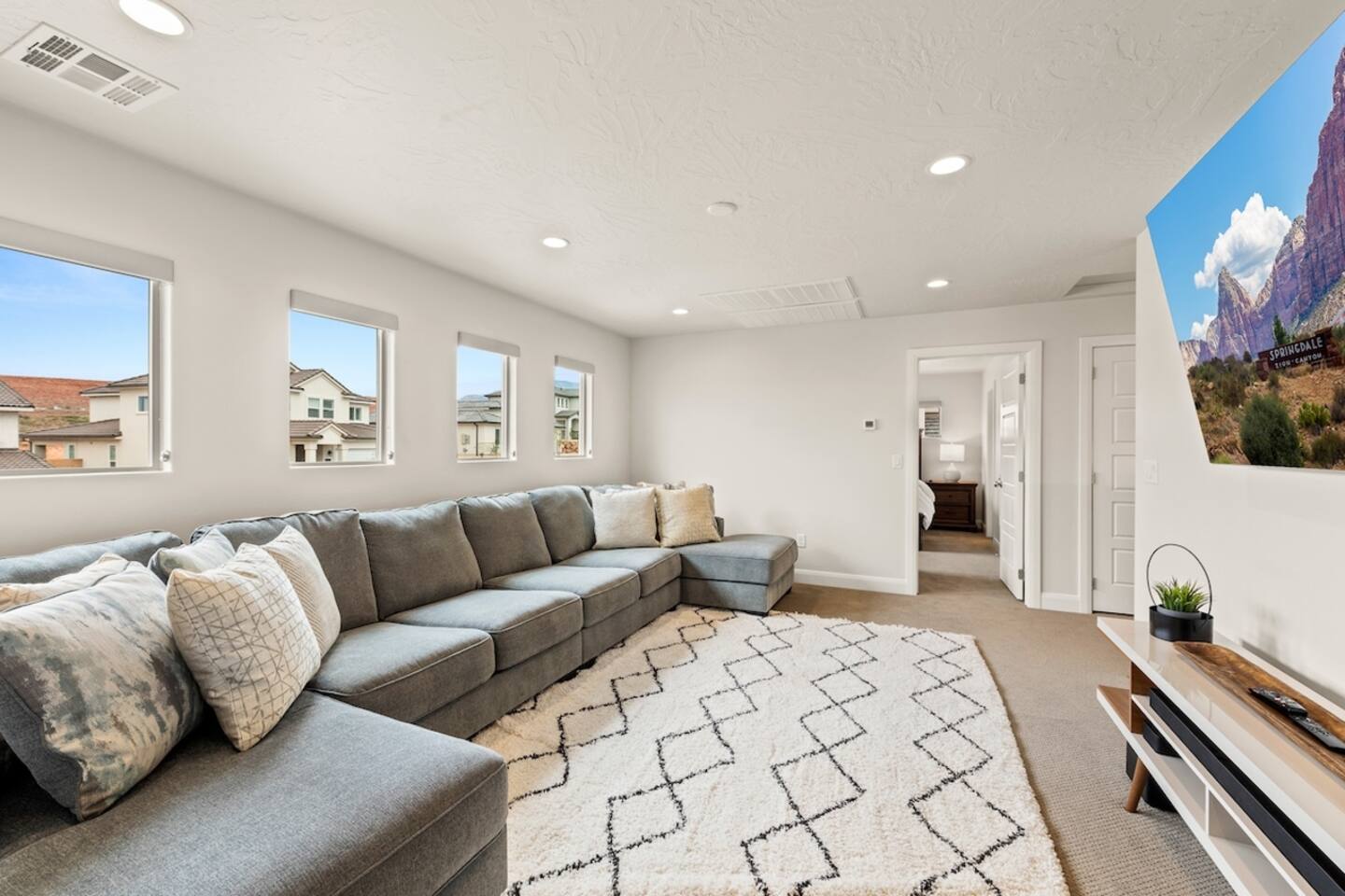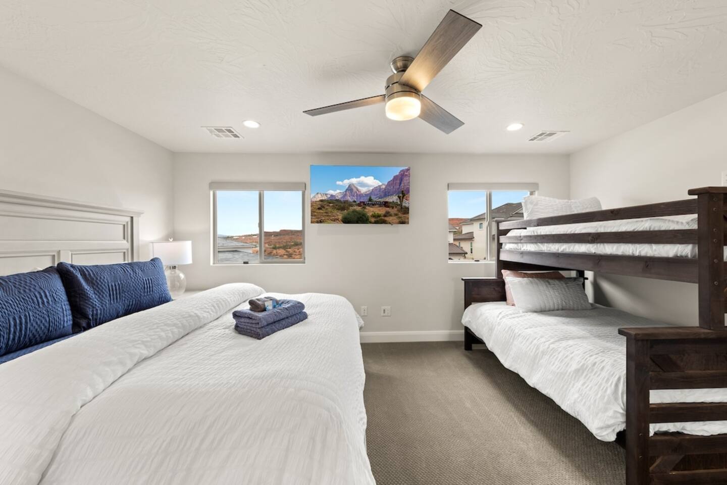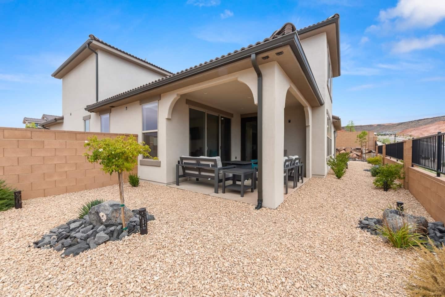 We are nestled in the picturesque red rocks of Southern Utah. Our resort style neighborhood offers a lazy river, pool with a water slide, 2 hot tubs, a splash pad, and 2 pickle ball courts. We are centrally located between all the attractions Southern Utah has to offer. Relax on the back patio and enjoy the beautiful Utah Desert view When you feel like heading into town, downtown St. George is 10 minutes away by car to enjoy fine eateries and shopping. Looking for something to do after dinner, catch a live performance at Tuacahn Center for the Arts which is only 20 minutes away. Feeling adventurous? Book an organized side-by-side tour through the red rocks and sand dunes at Sand Hollow. Estimated Travel Times: Sand Hollow State Park – 20 minute drive Zion National Park – 45 minute drive Toquerville Falls – 20 minute drive Bryce Canyon National Park – 2 hour drive Gunlock State Park – 40 minute drive Snow Canyon State Park – 20 minute drive Quail Creek State Park – 15 minute drive
