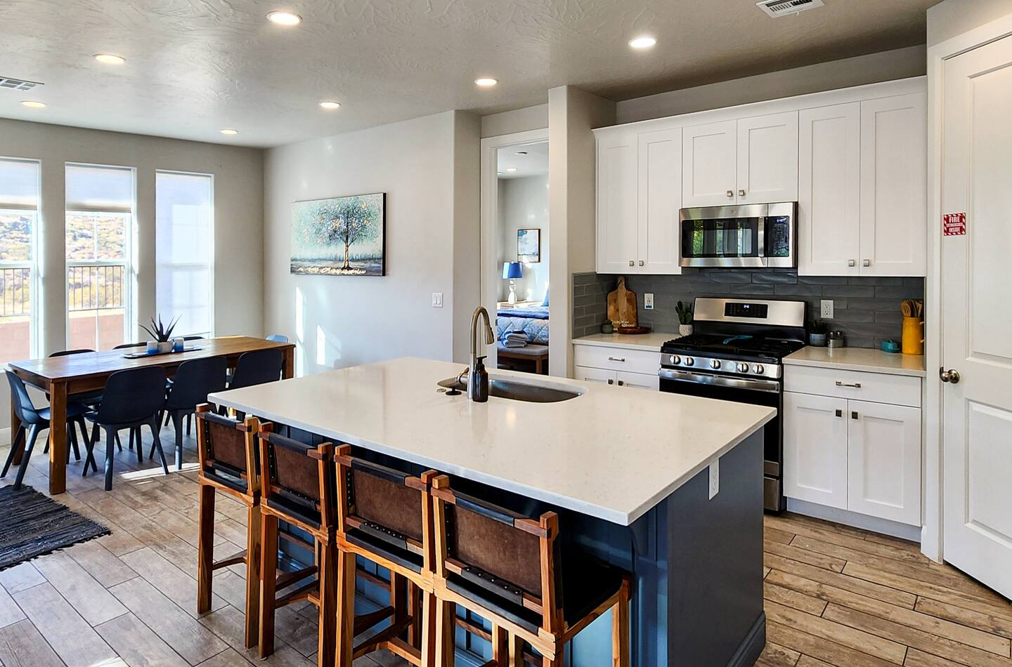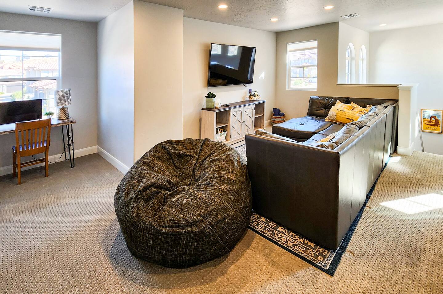 Experience the best of Southern Utah from the comfort of this townhome. Poppin’s Place’s 2600 sq ft. boasts 5 beds and 4 baths with a large living room and kitchen. Enjoy our lazy river, pool, hot tub, splash pad, or play pickle ball with the whole family. Whether you are here to play or need to work remote, fiber speed wifi will stream your shows or connect you via zoom! Centrally located to Zion Ntl Park, golf courses, hiking and biking trails, Sand Hollow, downtown St. George. EV-ready.