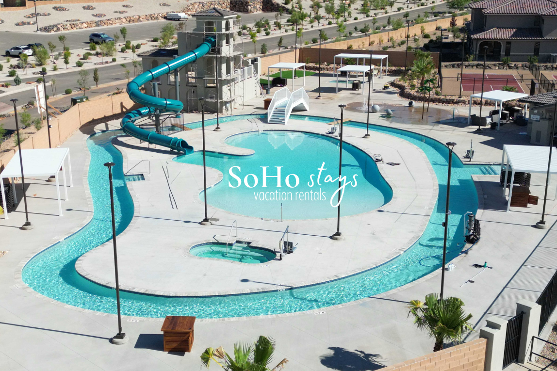 We are nestled in the picturesque red rocks of Southern Utah. Our resort style neighborhood offers a lazy river, pool with a water slide, 2 hot tubs, a splash pad, and 2 pickle ball courts. We are centrally located between all the attractions Southern Utah has to offer. When you feel like heading into town, downtown St. George is 10 minutes away by car to enjoy fine eateries and shopping. Looking for something to do after dinner, catch a live performance at Tuacahn Center for the Arts which is only 20 minutes away. Feeling adventurous? Book an organized side-by-side tour through the red rocks and sand dunes at Sand Hollow.