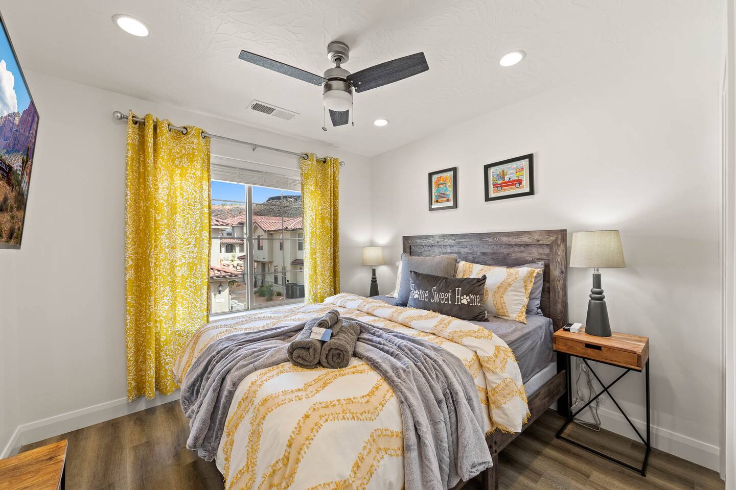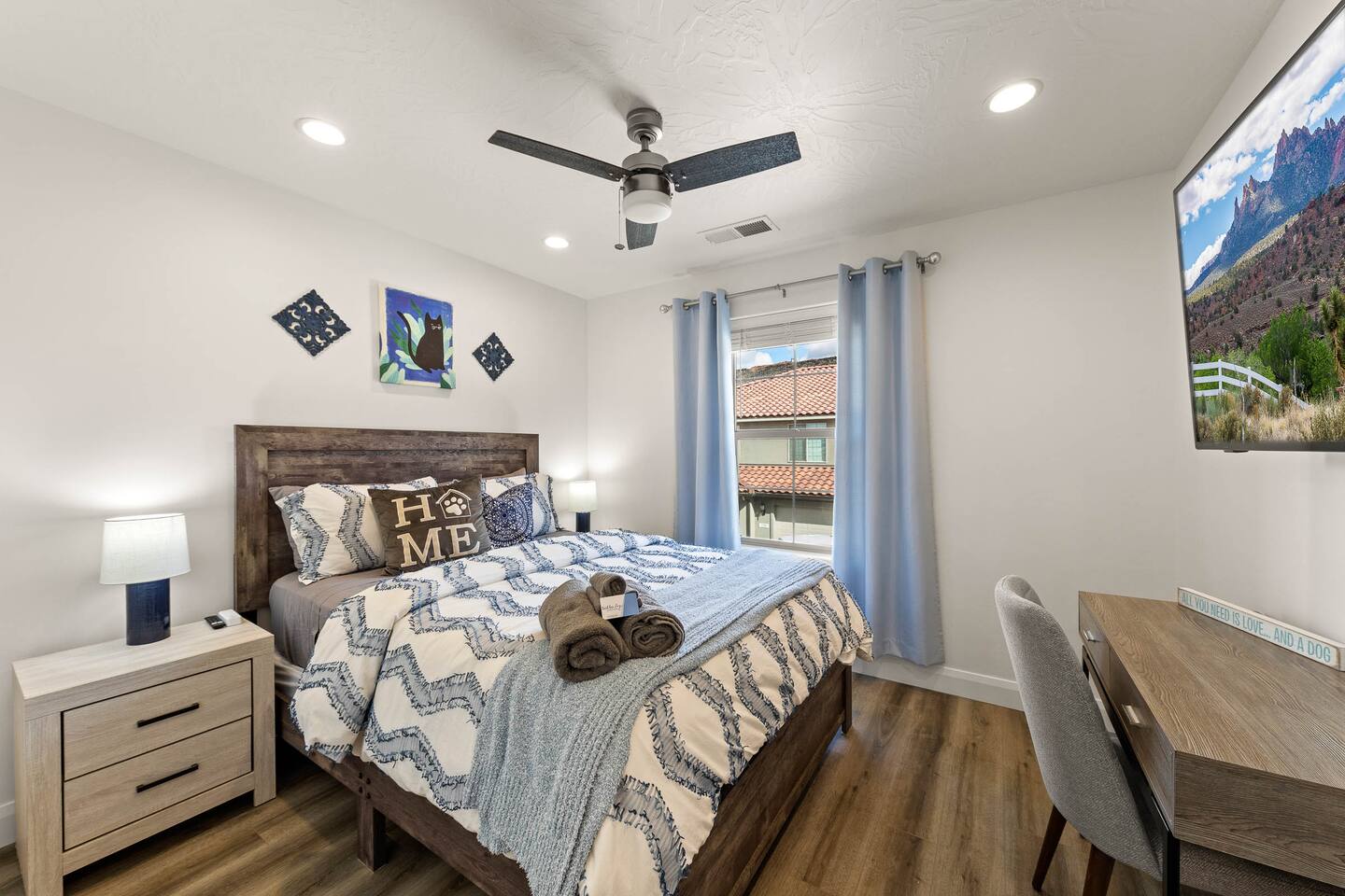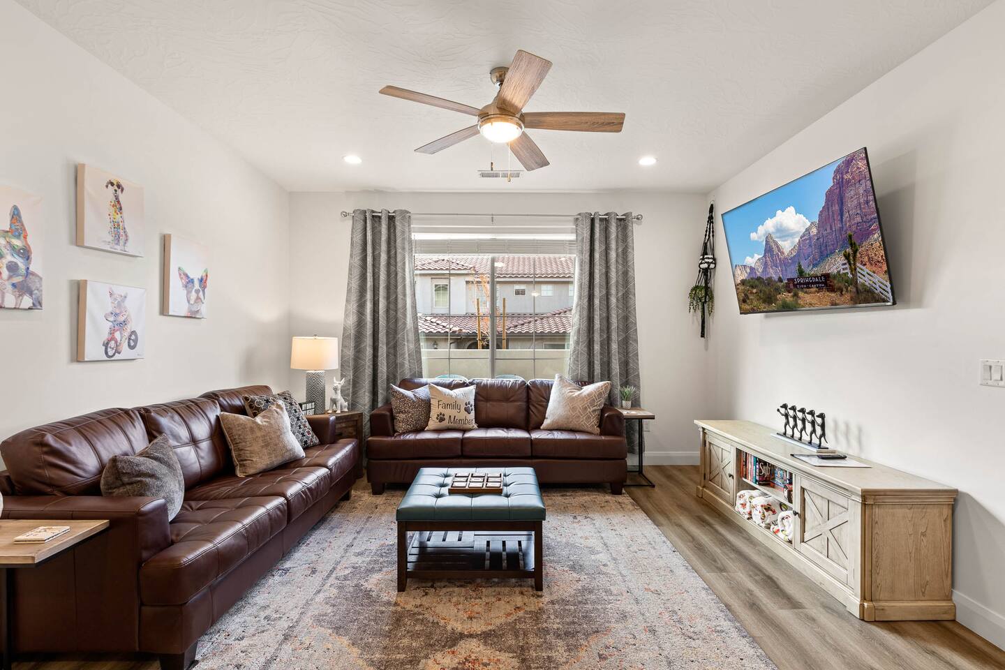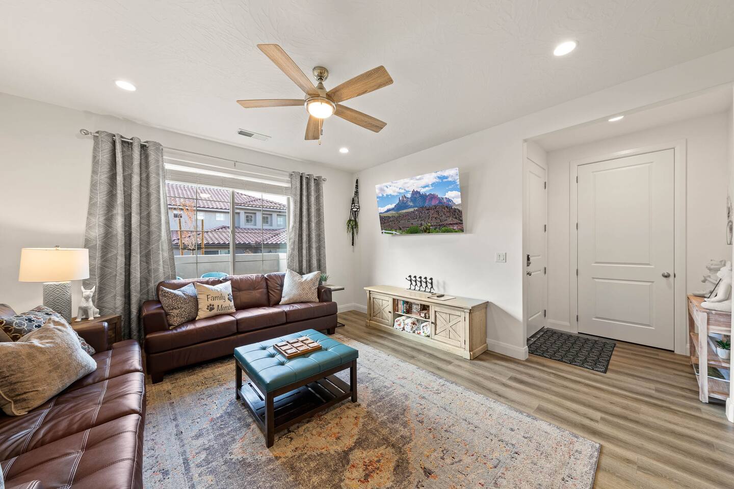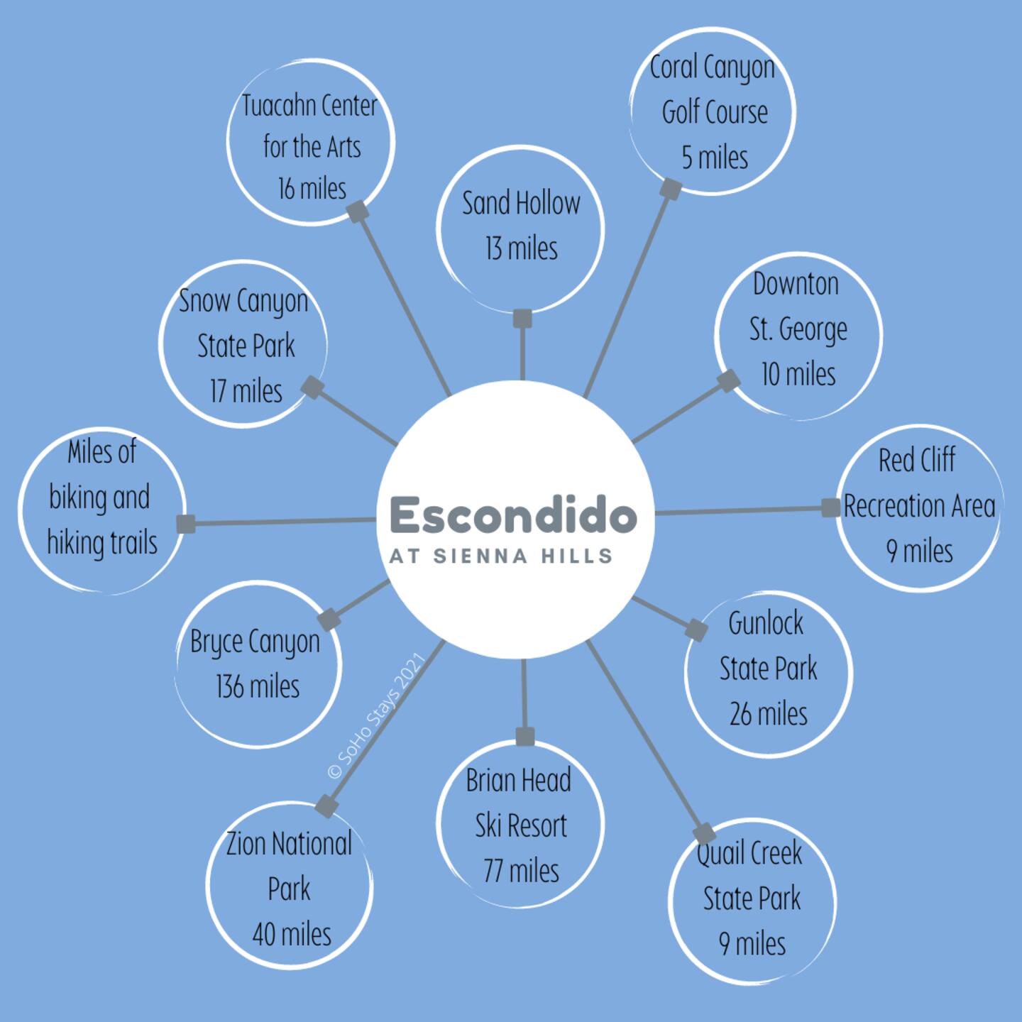 We are nestled in the picturesque red rocks of Southern Utah. Our resort style neighborhood offers a lazy river, pool with a water slide, 2 hot tubs, a splash pad, and 2 pickle ball courts. We are centrally located between all the attractions Southern Utah has to offer. When you feel like heading into town, downtown St. George is 10 minutes away by car to enjoy fine eateries and shopping. Looking for something to do after dinner, catch a live performance at Tuacahn Center for the Arts which is only 20 minutes away. Feeling adventurous? Book an organized side-by-side tour through the red rocks and sand dunes at Sand Hollow. Estimated Travel Times: Sand Hollow State Park – 20 minute drive Zion National Park – 45 minute drive Toquerville Falls – 20 minute drive Bryce Canyon National Park – 2 hour drive Gunlock State Park – 40 minute drive Snow Canyon State Park – 20 minute drive Quail Creek State Park – 15 minute drive