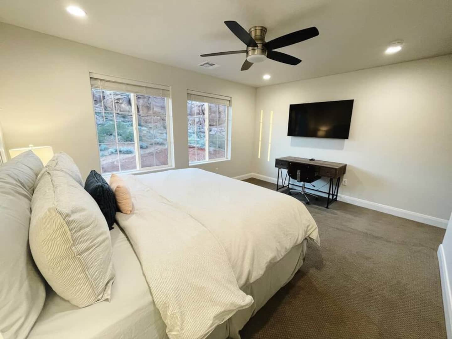 We are nestled in the picturesque red rocks of Southern Utah. Our resort style neighborhood offers a lazy river, pool with a water slide, 2 hot tubs, a splash pad, and 2 pickle ball courts. We are centrally located between all the attractions Southern Utah has to offer. When you feel like heading into town, downtown St. George is 10 minutes away by car to enjoy fine eateries and shopping. Looking for something to do after dinner, catch a live performance at Tuacahn Center for the Arts which is only 20 minutes away. Feeling adventurous? Book an organized side-by-side tour through the red rocks and sand dunes at Sand Hollow.